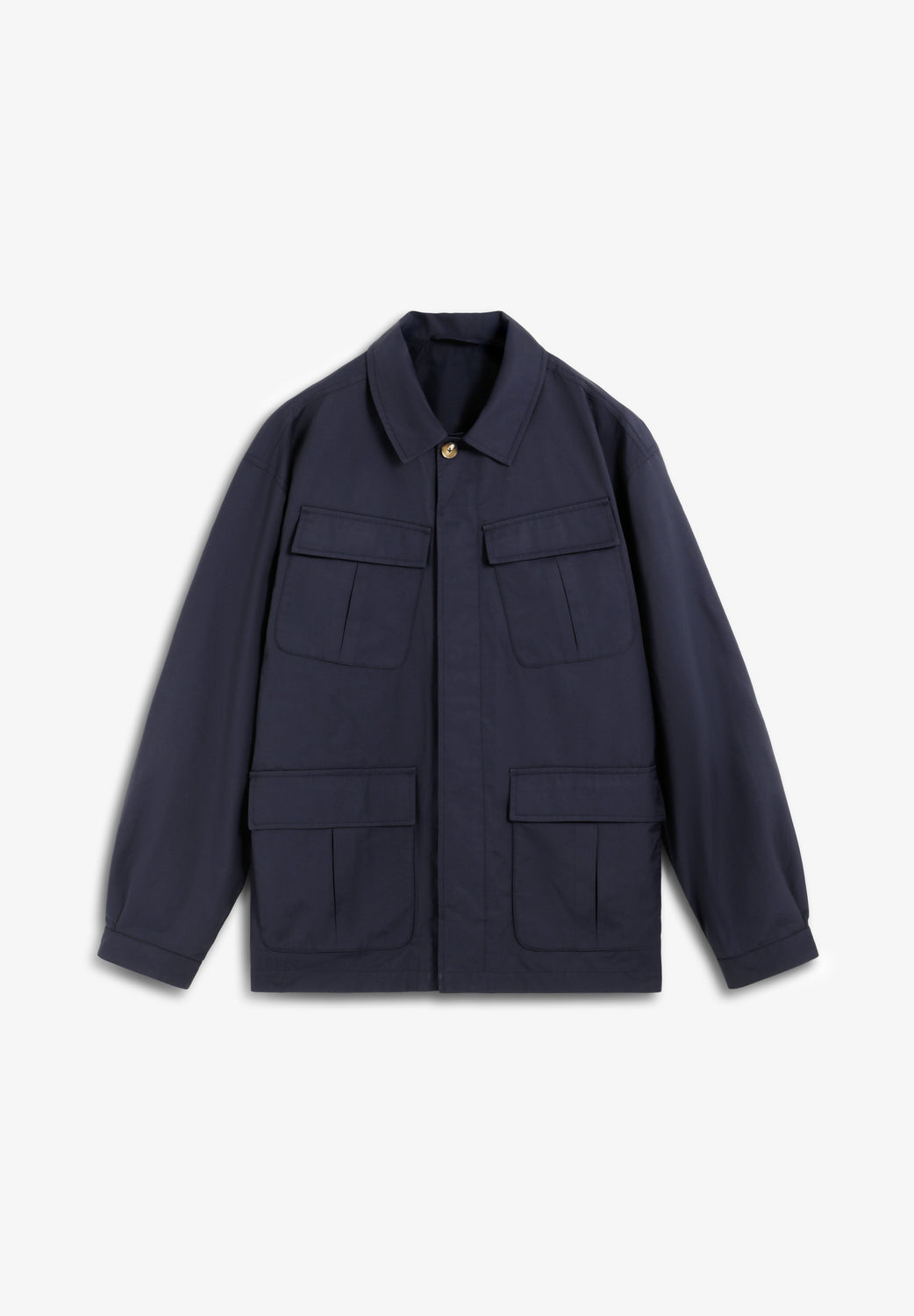 Chaqueta confeccionada en mezcla de algodón. Cuatro bolsillos. Estilo militar. Cierre frontal con botones. Solapas de bolsillo en ángulo y cuello camisero.