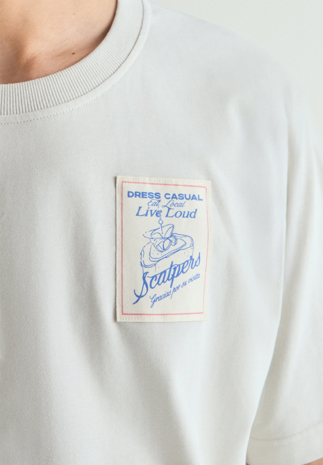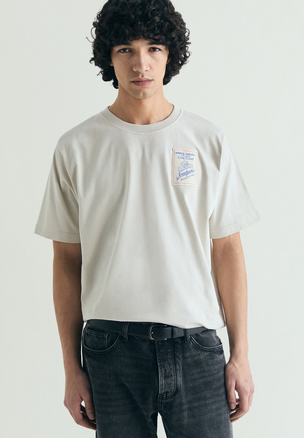 Camiseta confeccionada en 100% algodón . Relaxed Fit. Cuello redondo y manga corta. Detalle parche en el pecho y print trasero.
