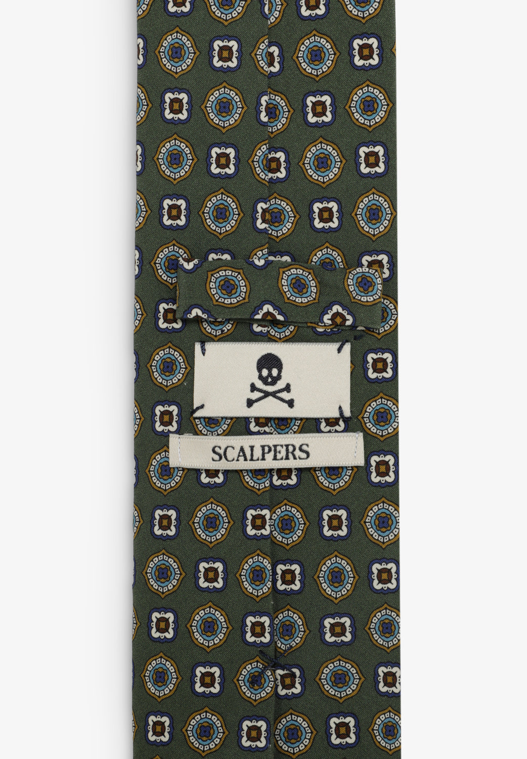 Corbata confeccionada en 100% seda con motivos estampados.