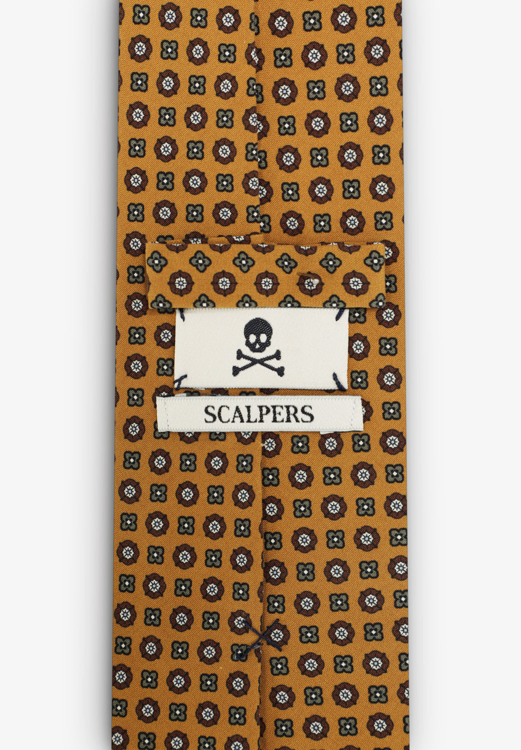 Corbata confeccionada en 100% seda con motivos estampados.