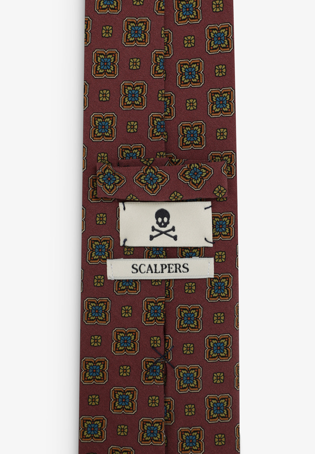 Corbata confeccionada en 100% seda con motivos estampados.