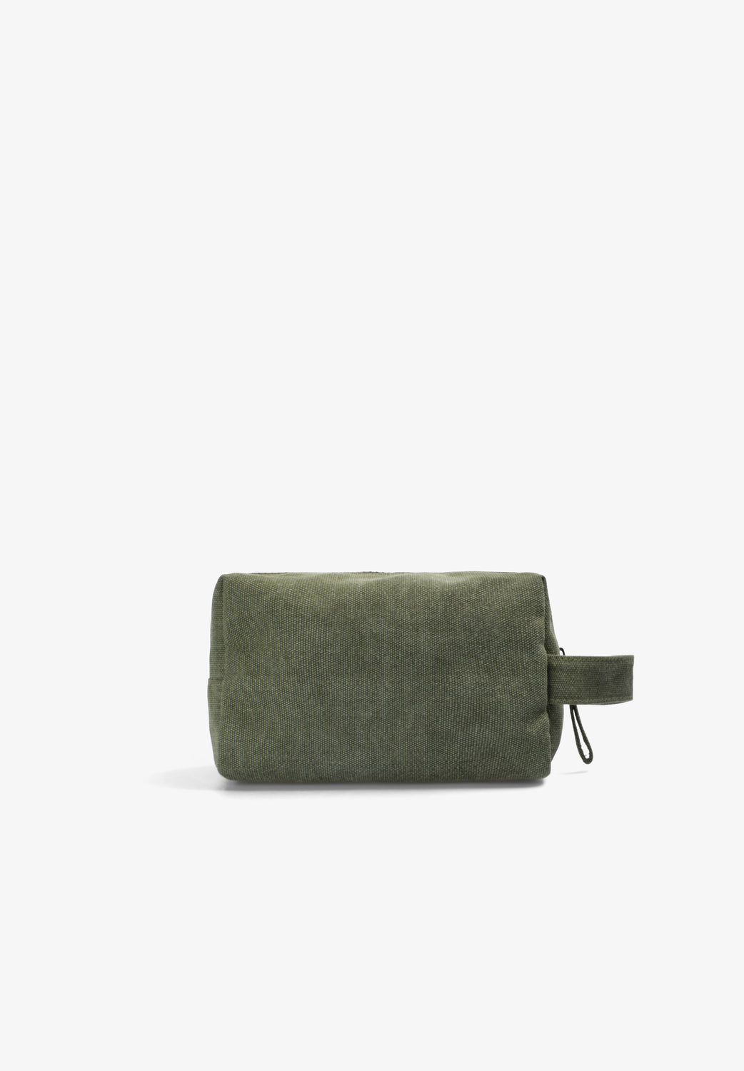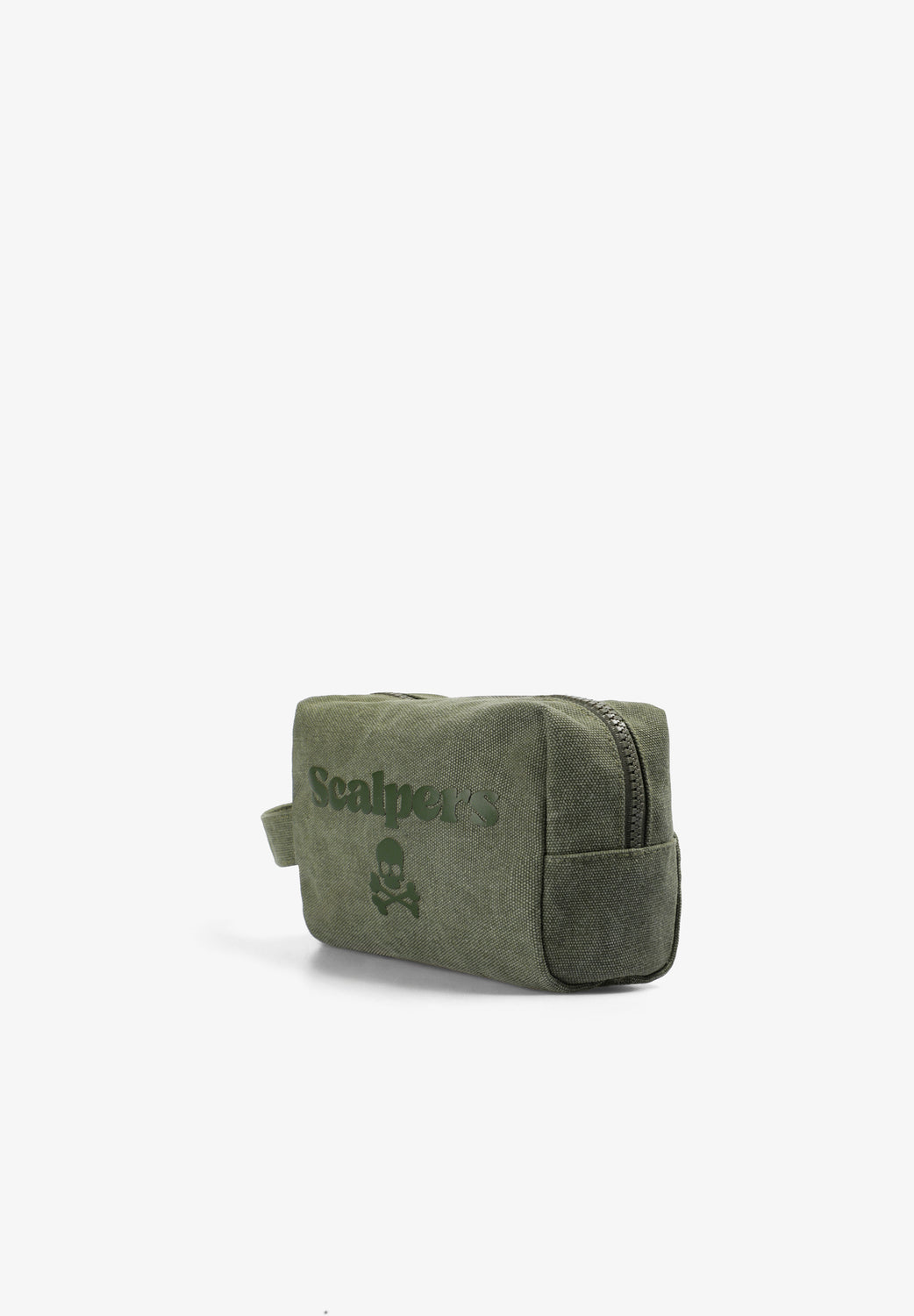Neceser confeccionando en tejido canvas. Cierre con cremallera. Detalle asa en el lateral. Estampado frontal. Etiqueta identificativa interior.