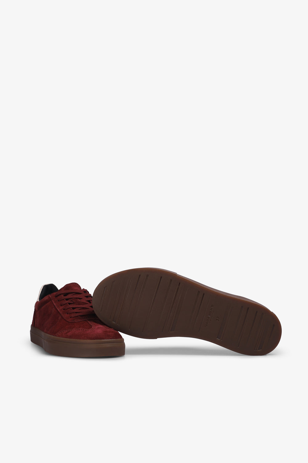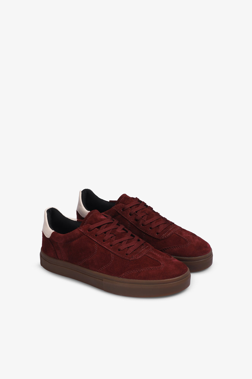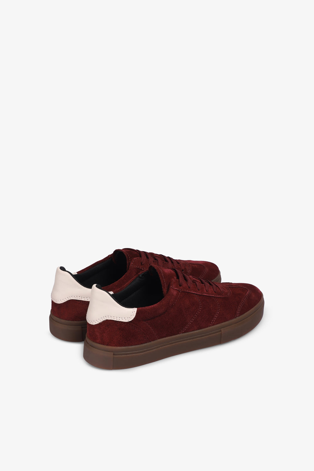 Sneakers Vagabond confeccionadas en ante rojo cereza, con un talón en cuero a contraste. Cuenta con cierre de cordones y plantilla de cuero. Altura de tacón: 5mm.