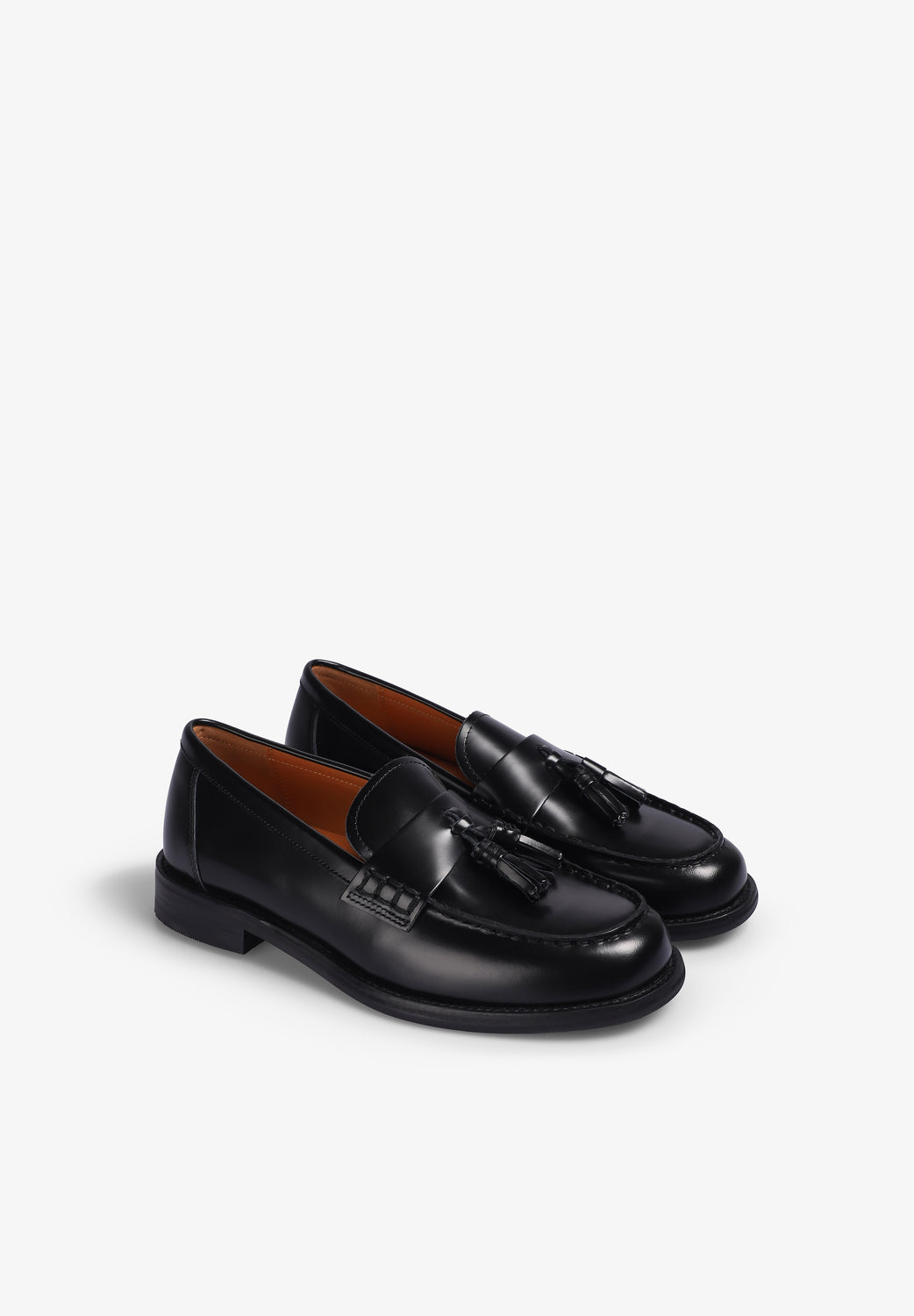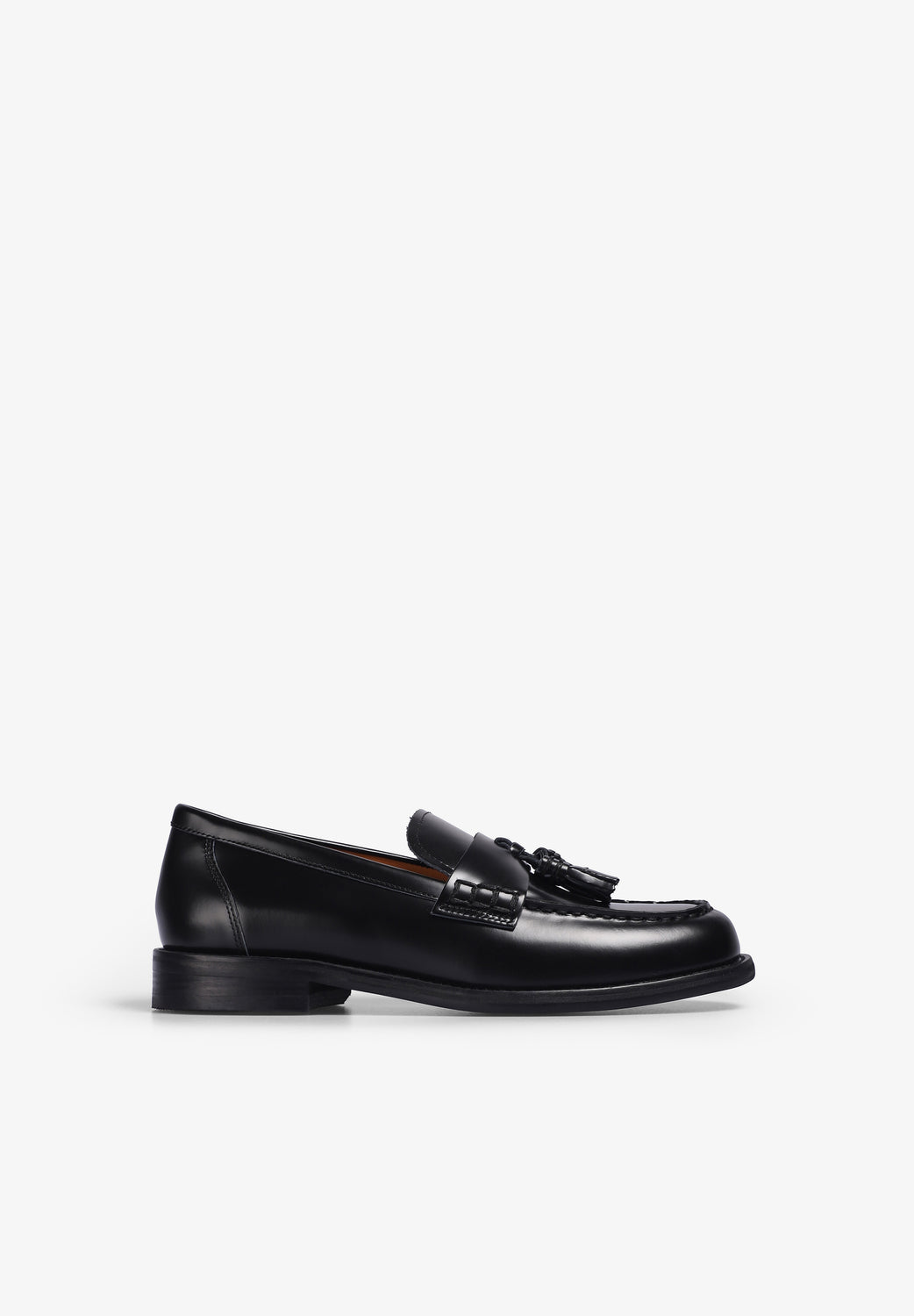Mocasines Vagabond confeccionados en cuero negro pulido. Presenta una costura de puntera de mocasín, plantilla y forro de cuero, La suela tiene una fina capa de goma que proporciona un buen agarre. Altura de tacón: 26mm.