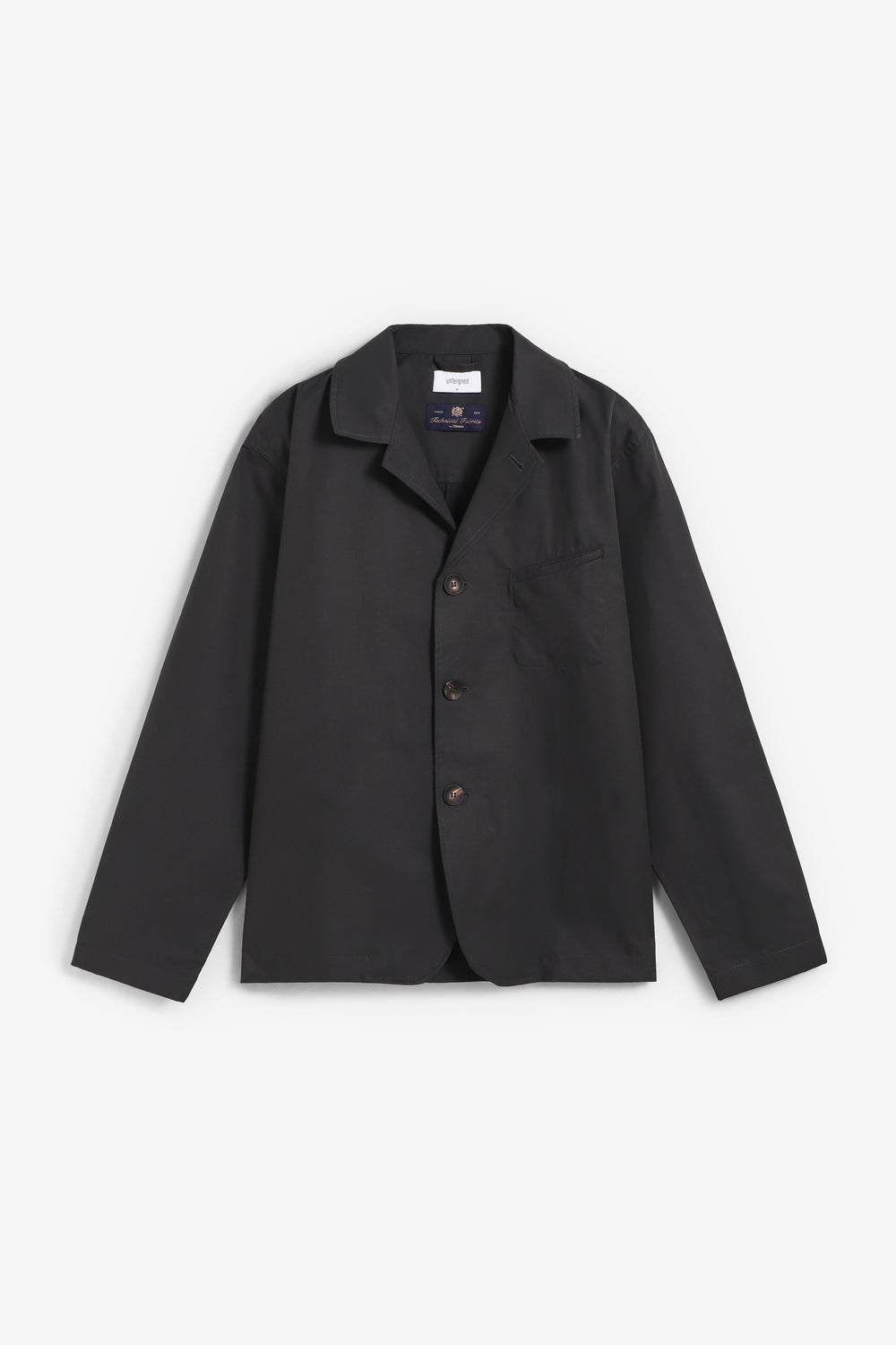 Blazer técnica Unfeigned confeccionada en 64% algodón orgánico y 36% poliamida. Presenta una silueta relajada y un diseño elegante. Ligera y sin forro, tiene costuras ocultas y un acabado impecable repelente al agua y transpirable.