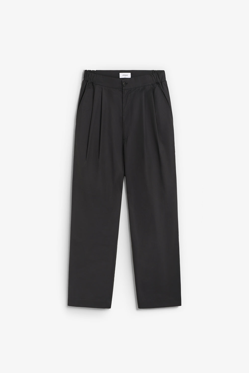 Pantalón técnico Unfeigned confeccionado en 64% algodón orgánico y 36% poliamida. Presentan un corte holgado y un tacto a medida, refinado pero sin ser restrictivos. Repelentes al agua, presentan un frontal liso, detalles de construcción ocultos y una pernera ligeramente ceñida que facilita el movimiento.