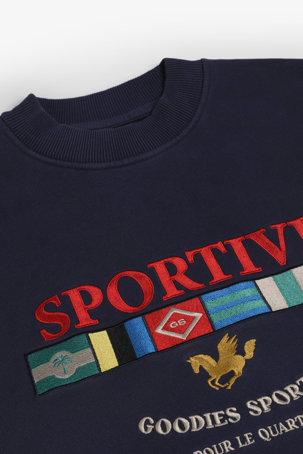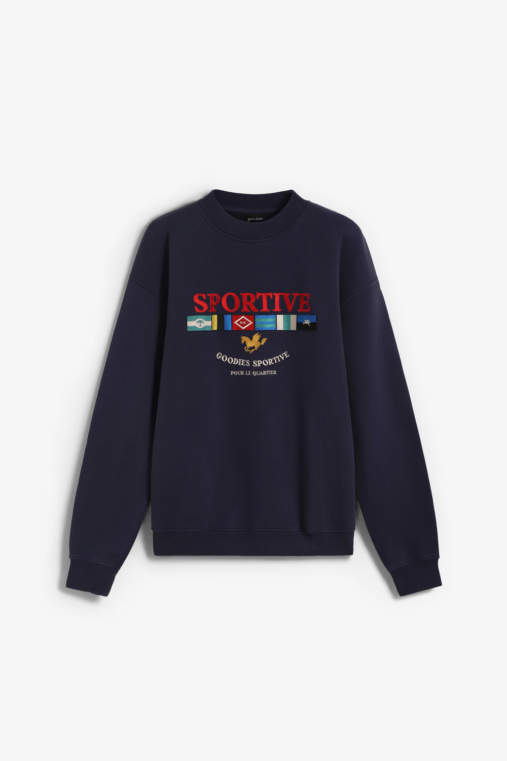Sudadera Goodies Sportive confeccionada en algodón pesado. Cuenta con cuello redondo y banderas vintage bordadas en el pecho.