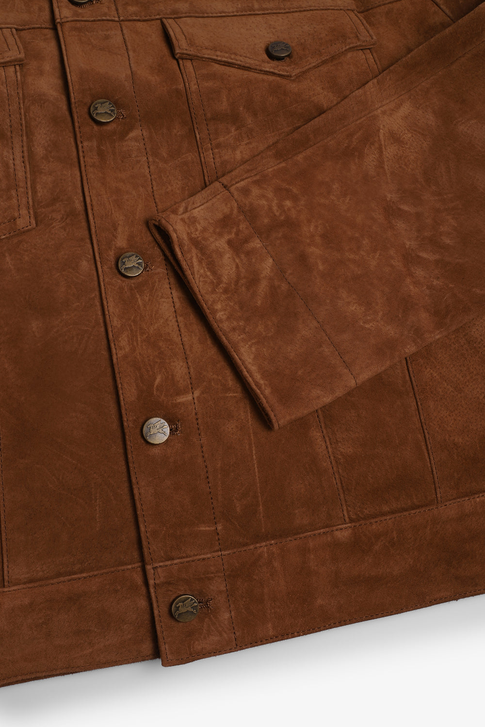 Chaqueta Goodies Sportive confeccionada en 100% algodón y ajuste boxy, Presenta un estilo de camionero de cuero auténtico y logotipo de Pegaso grabado en los botones.