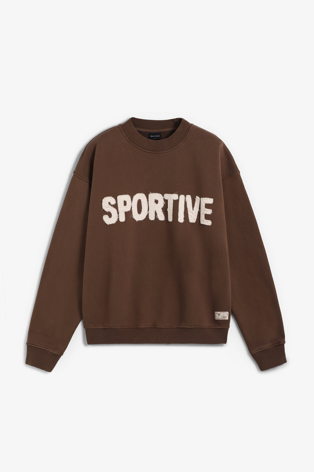 Sudadera Goodies Sportive confeccionada en 100% algodón. Cuenta con cuello redondo y aplique de tejido crudo con "Sportive" en el pecho.