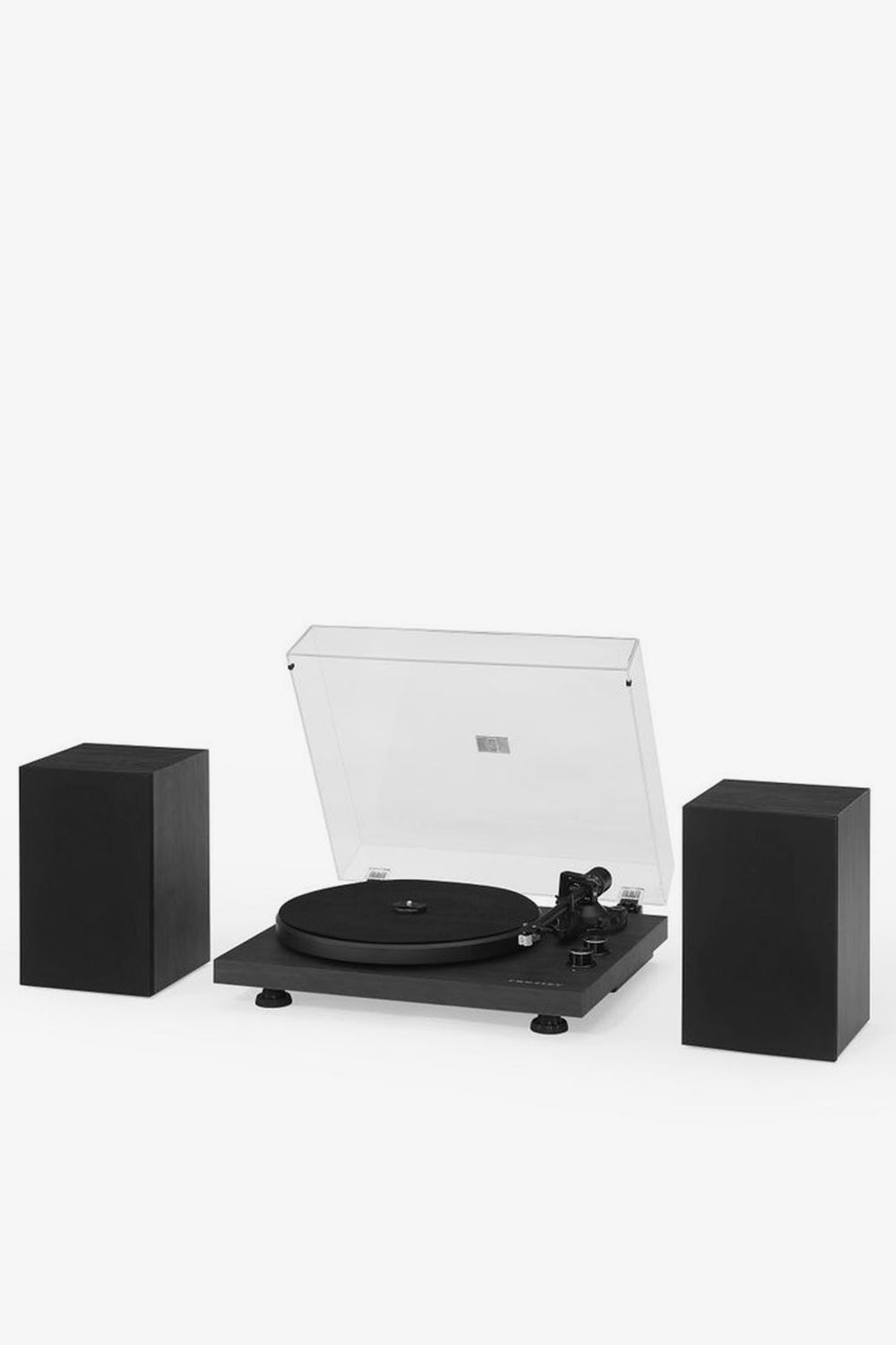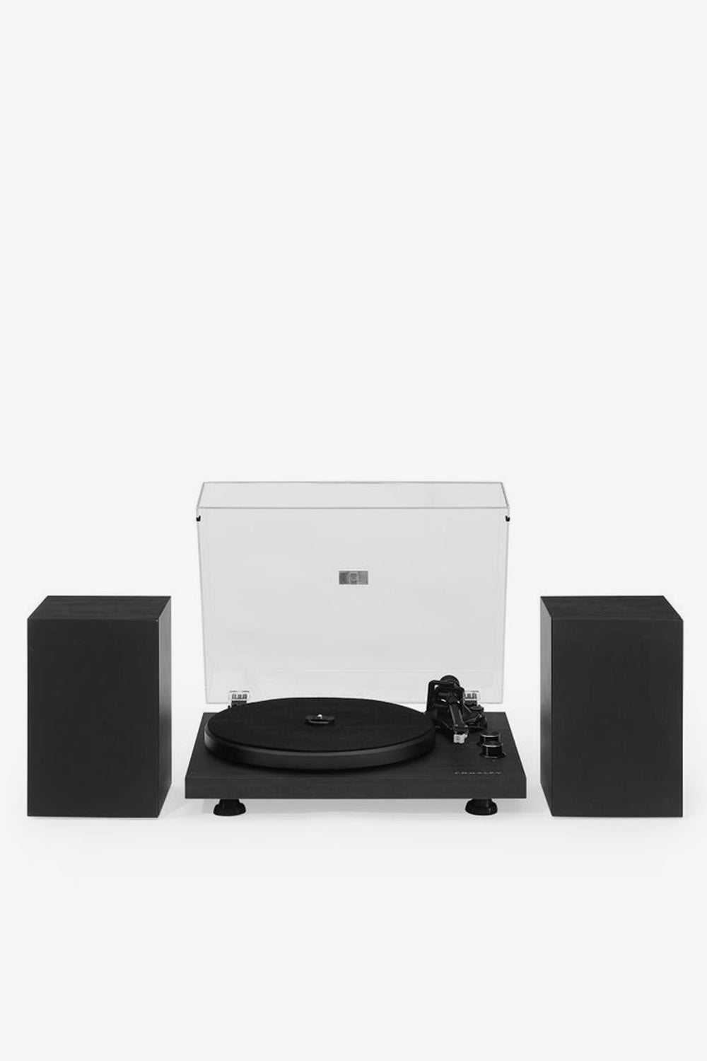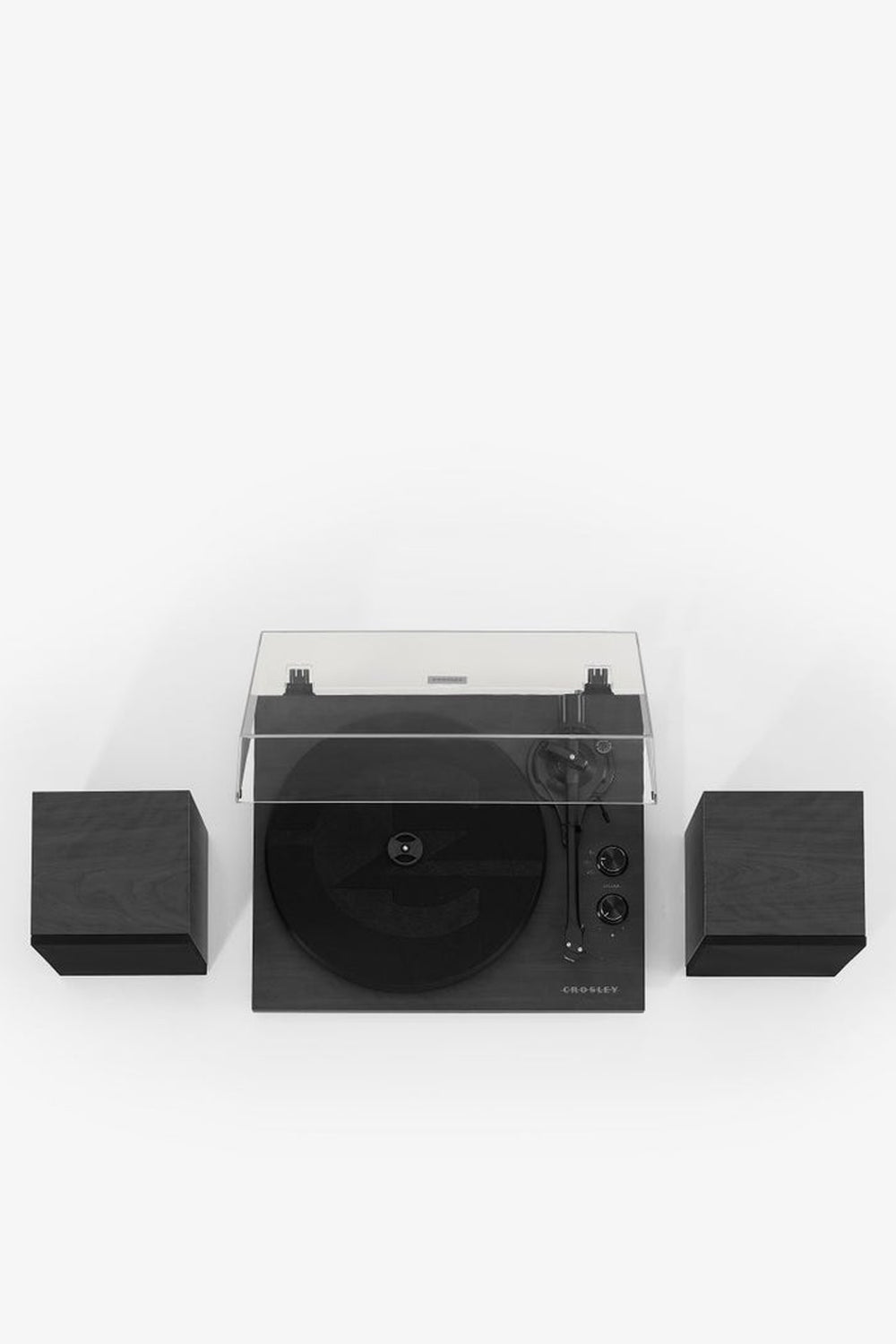 Tocadiscos Crosley de dos velocidades. Reproduce discos de 7", 10" o 12", integra dos altavoces externos de 8Ω, 10 W, aguja de diamante NP15 y entrada de bluetooth.