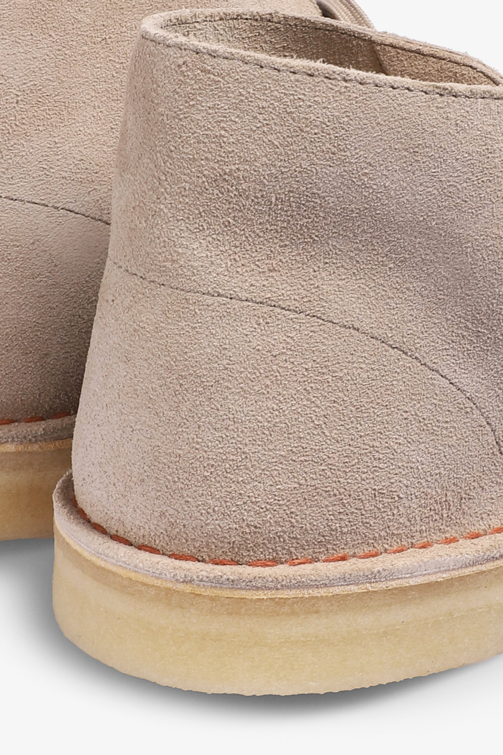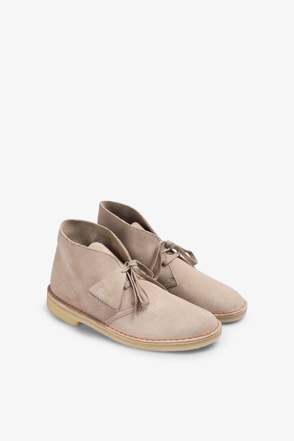 Botas Clarks confeccionadas en pelo de vaca. Cuentan con dos cordones planos marrones, crepé natural con spray de suela en color madera y logotipo de Clarks Originals grabado en caliente con lámina metálica en la plantilla.