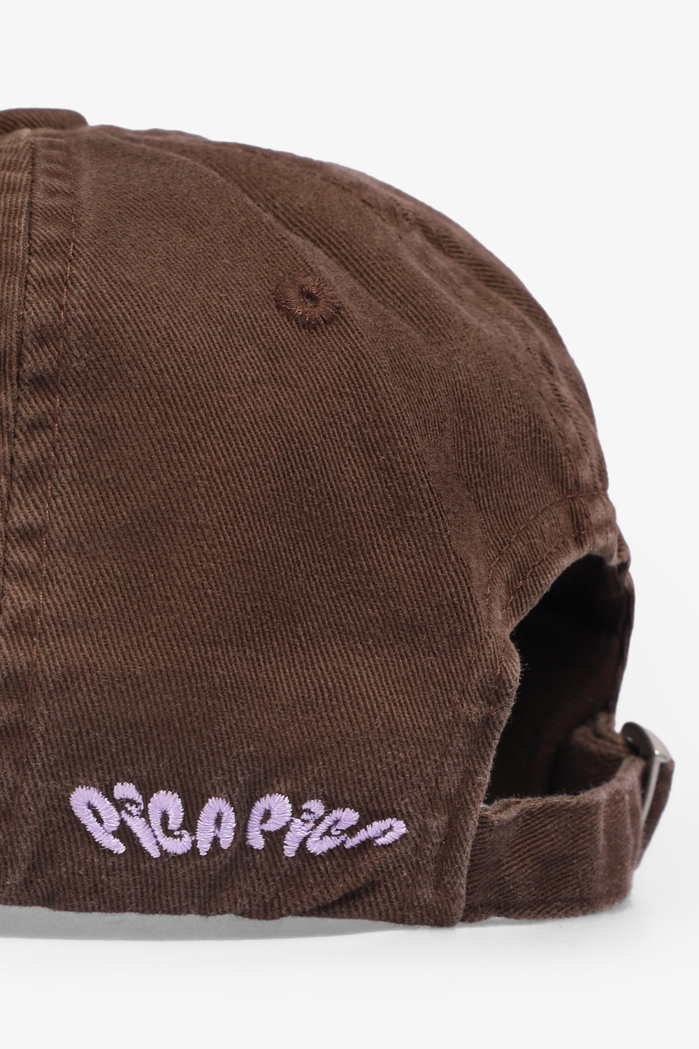Gorra Pica Pica confeccionada en 100% algodón. Presenta un impecable bordado blanco sobre una rica sarga de algodón. Silueta de seis paneles sin estructura, visera curva y correa trasera ajustable.