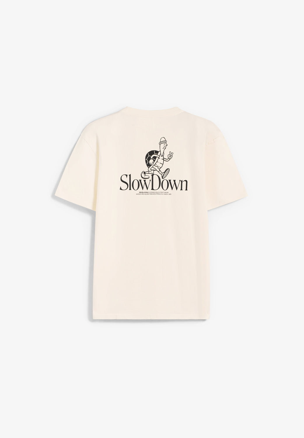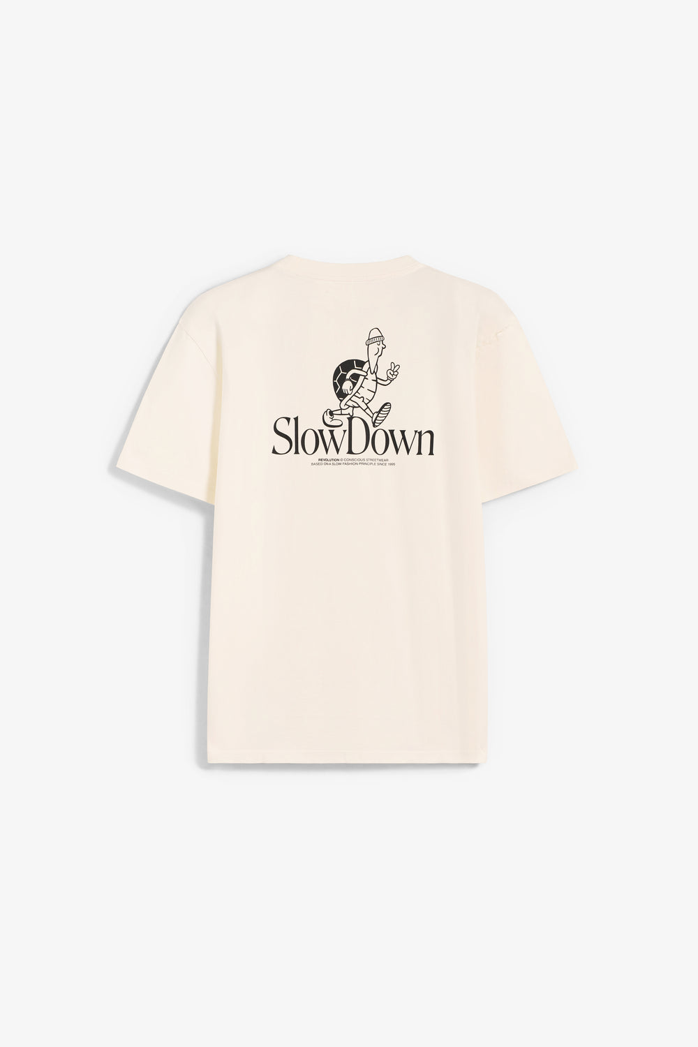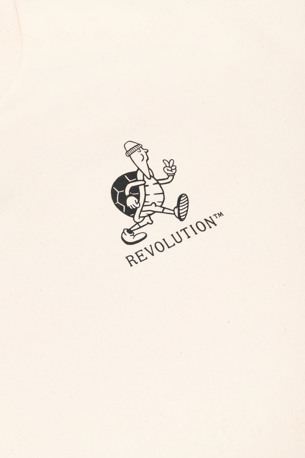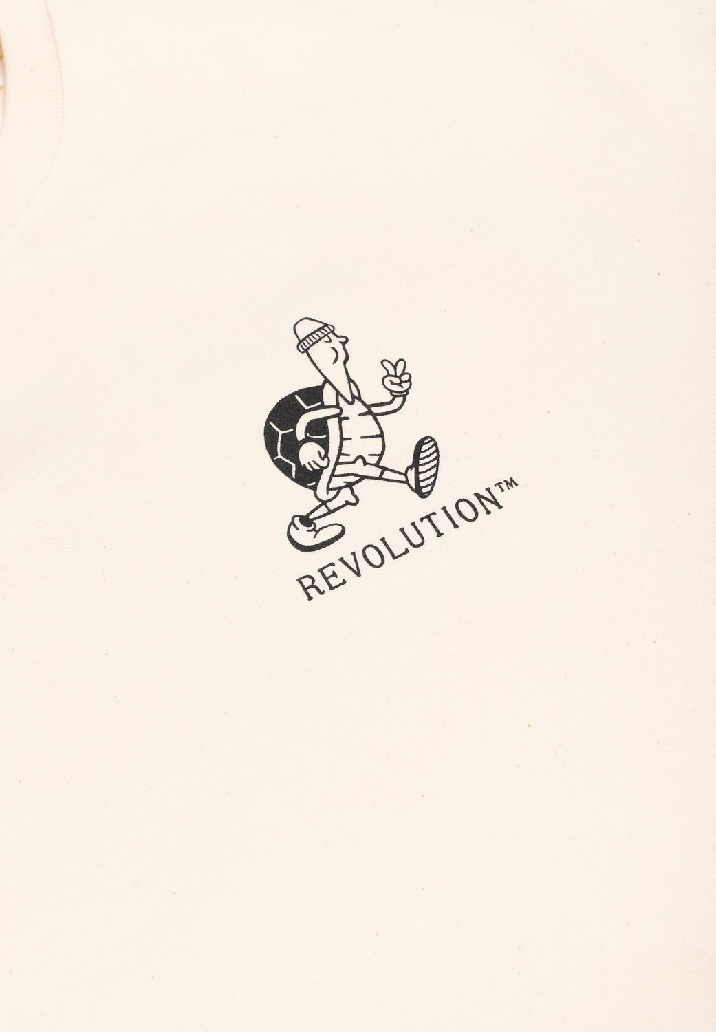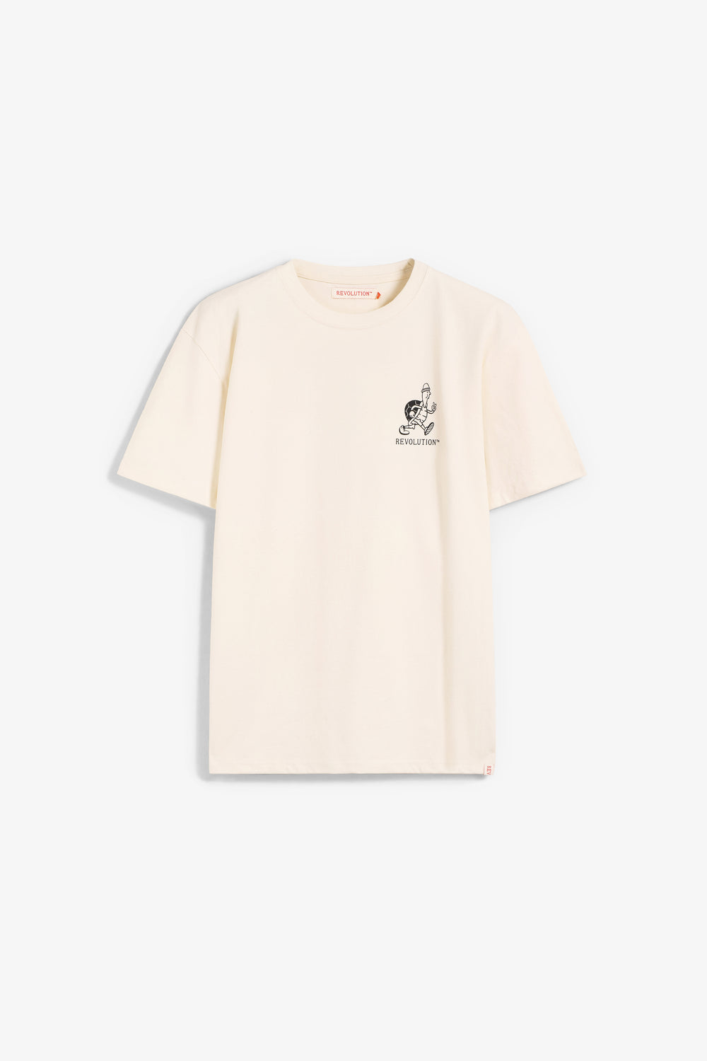 Camiseta Revolution confeccionada en jersey de algodón orgánico. Cuenta con cuello redondo, manga corta y estampado gráfico grande en la espalda y uno pequeño en el pecho.