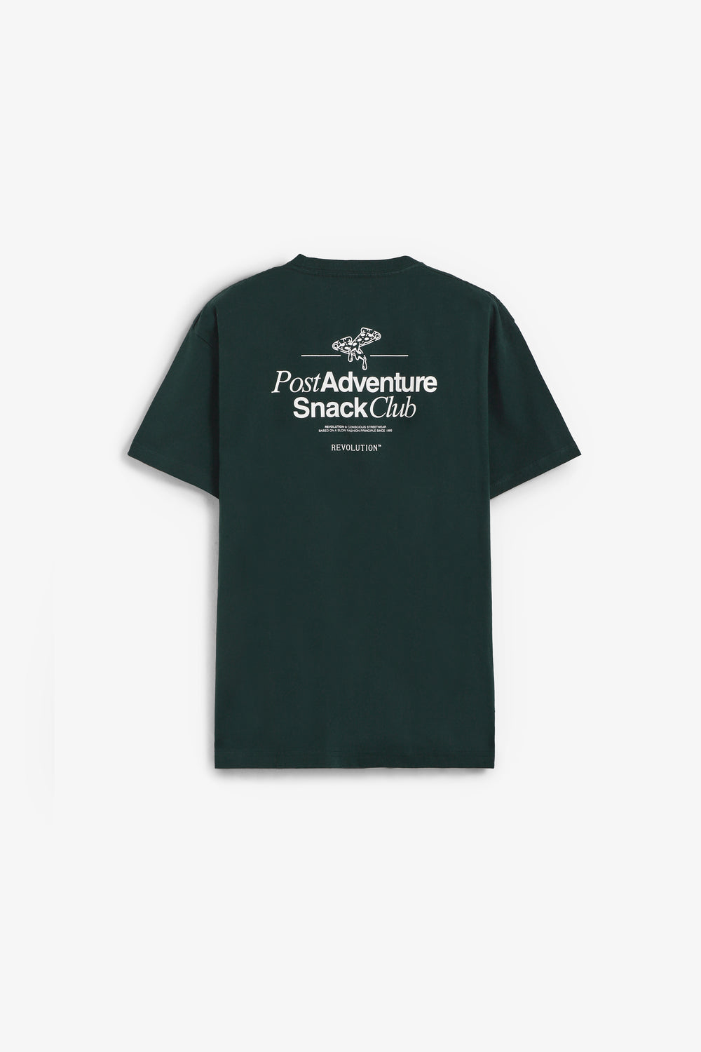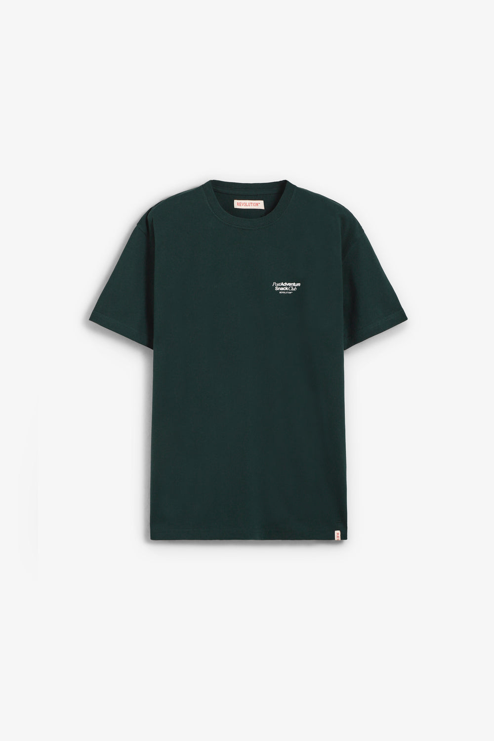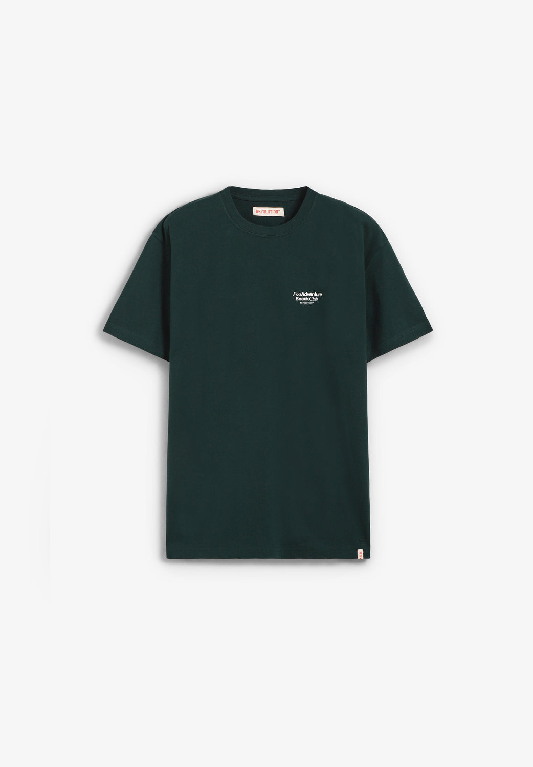Camiseta Revolution confeccionada en jersey de algodón orgánico y corte holgado. Cuenta con cuello redondo, manga corta y estampado gráfico grande en la espalda y uno pequeño en el pecho.