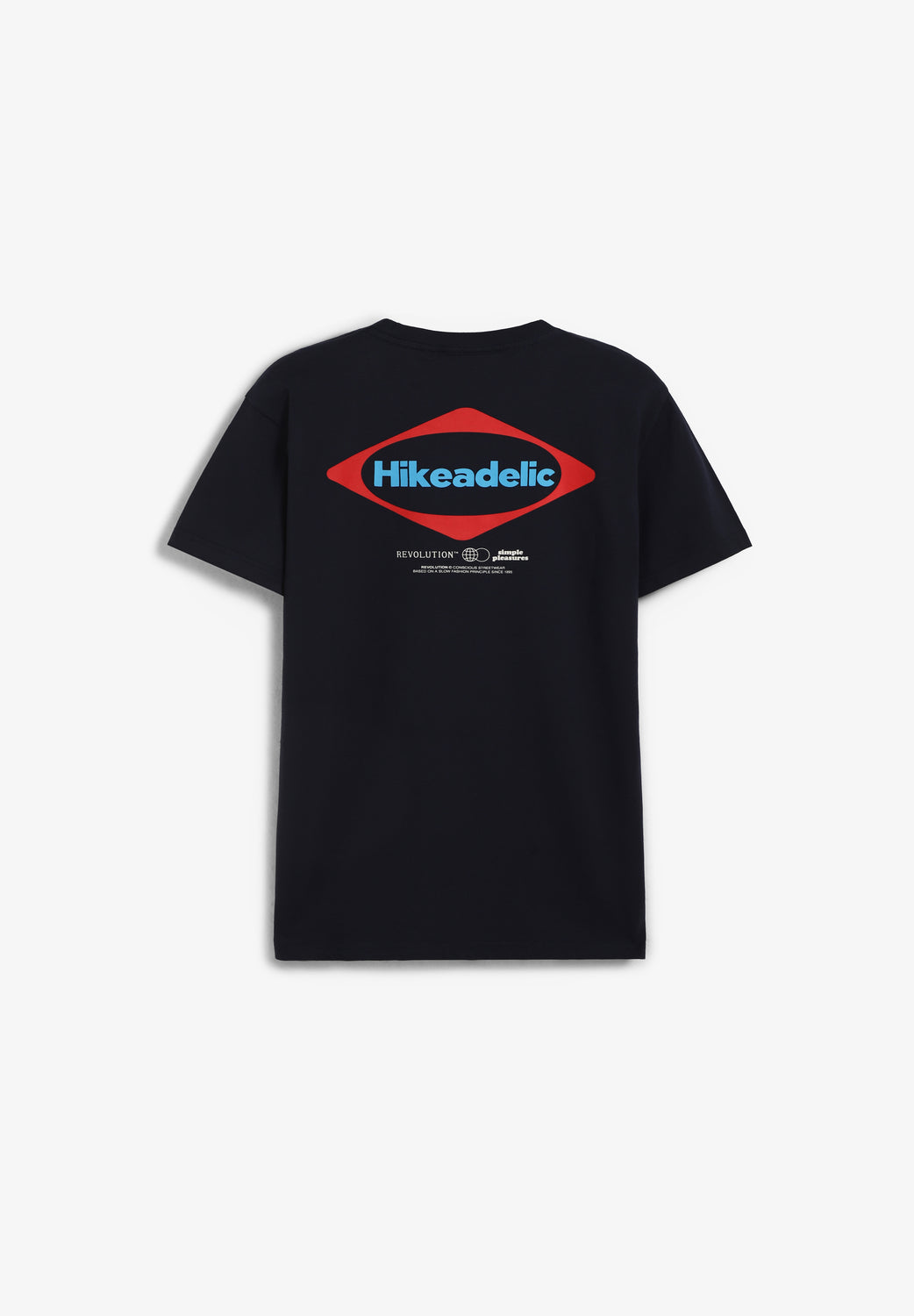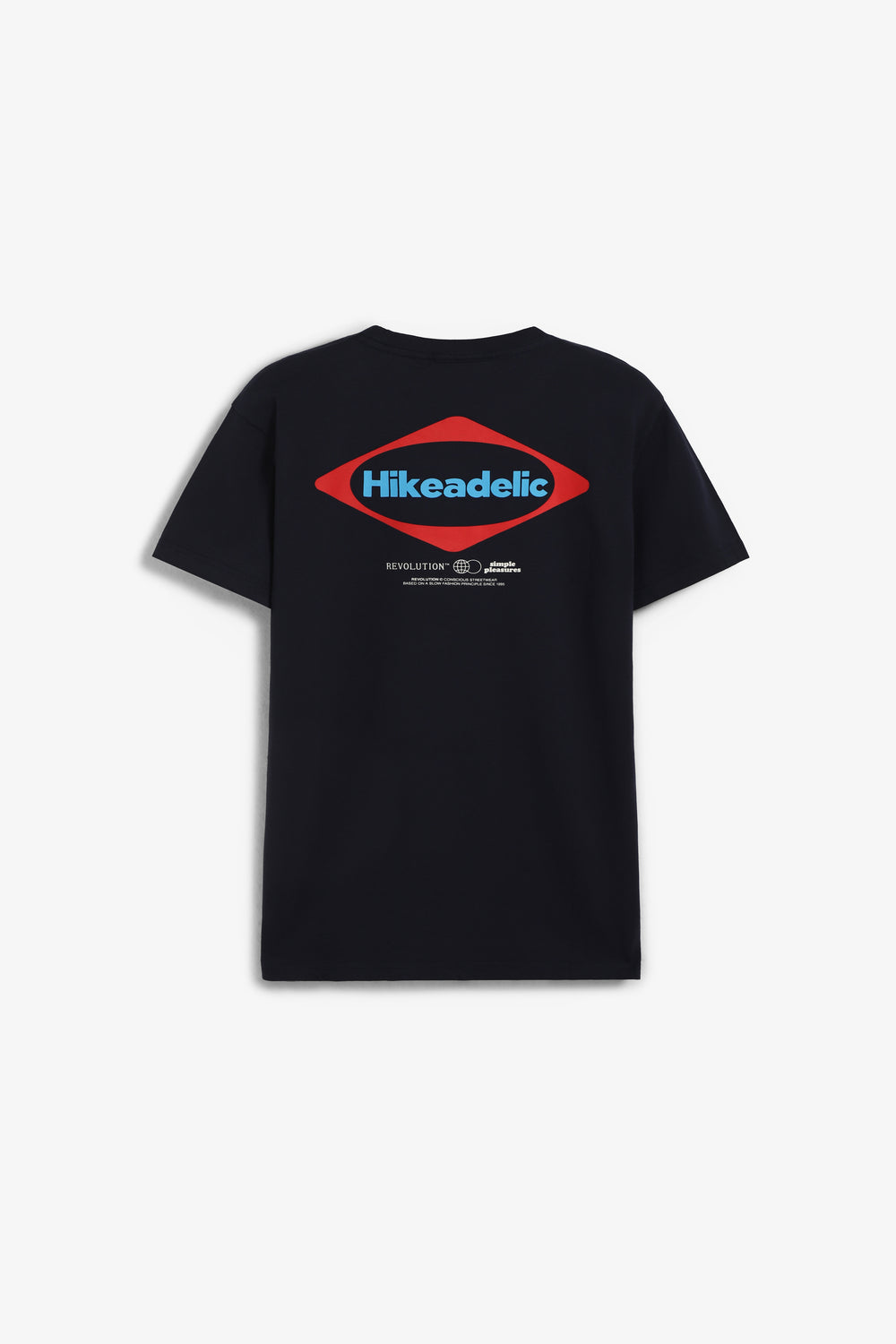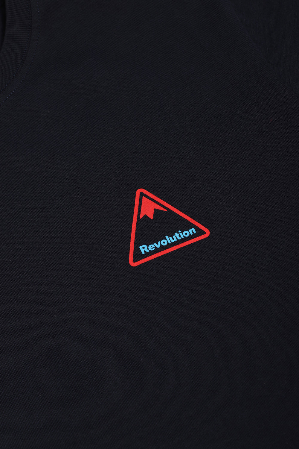 Camiseta Revolution confeccionada en jersey de algodón orgánico. Cuenta con cuello redondo, manga corta y estampado gráfico grande en la espalda y uno pequeño en el pecho.
