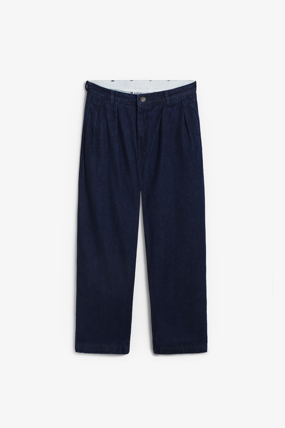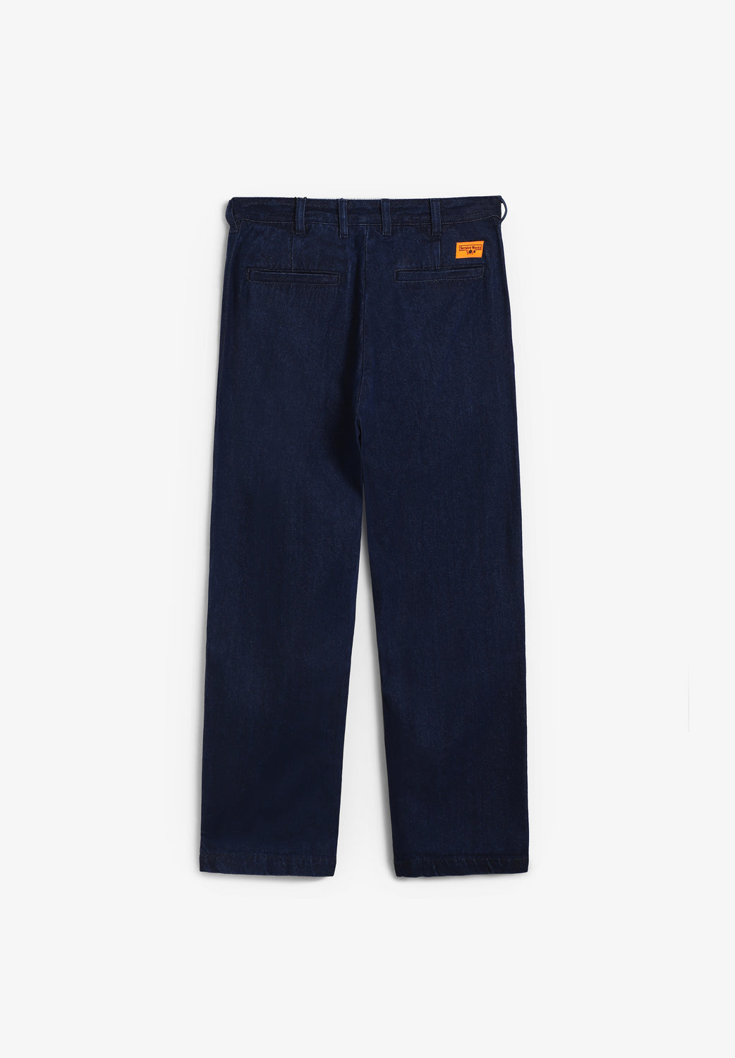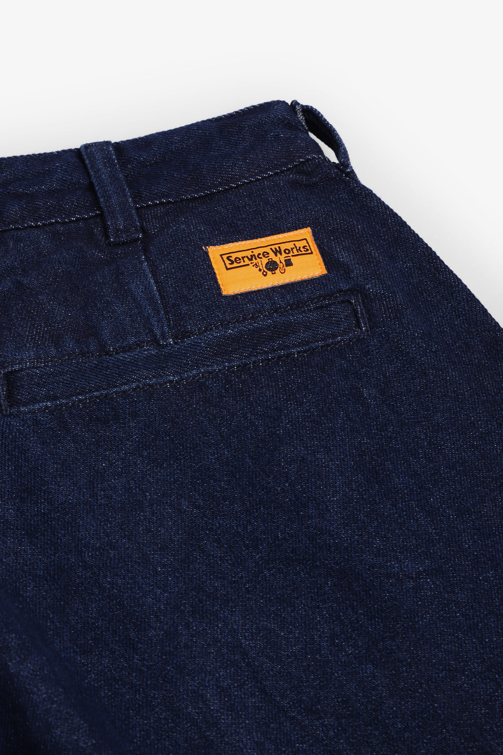 Pantalón vaquero Service Works confeccionado en mezcla de algodón orgánico GOTS. Presenta un corte globo holgado con un sutil estrechamiento, doble pliegue, cierre con cremallera y botón, trabillas para cinturón y bolsillos traseros con etiqueta tejida.