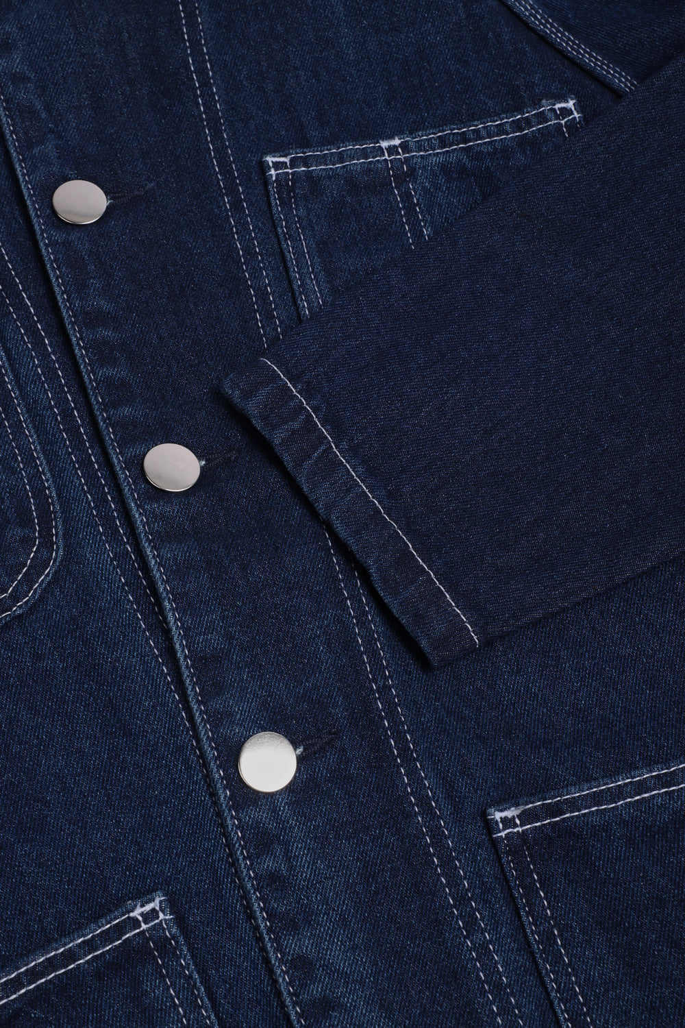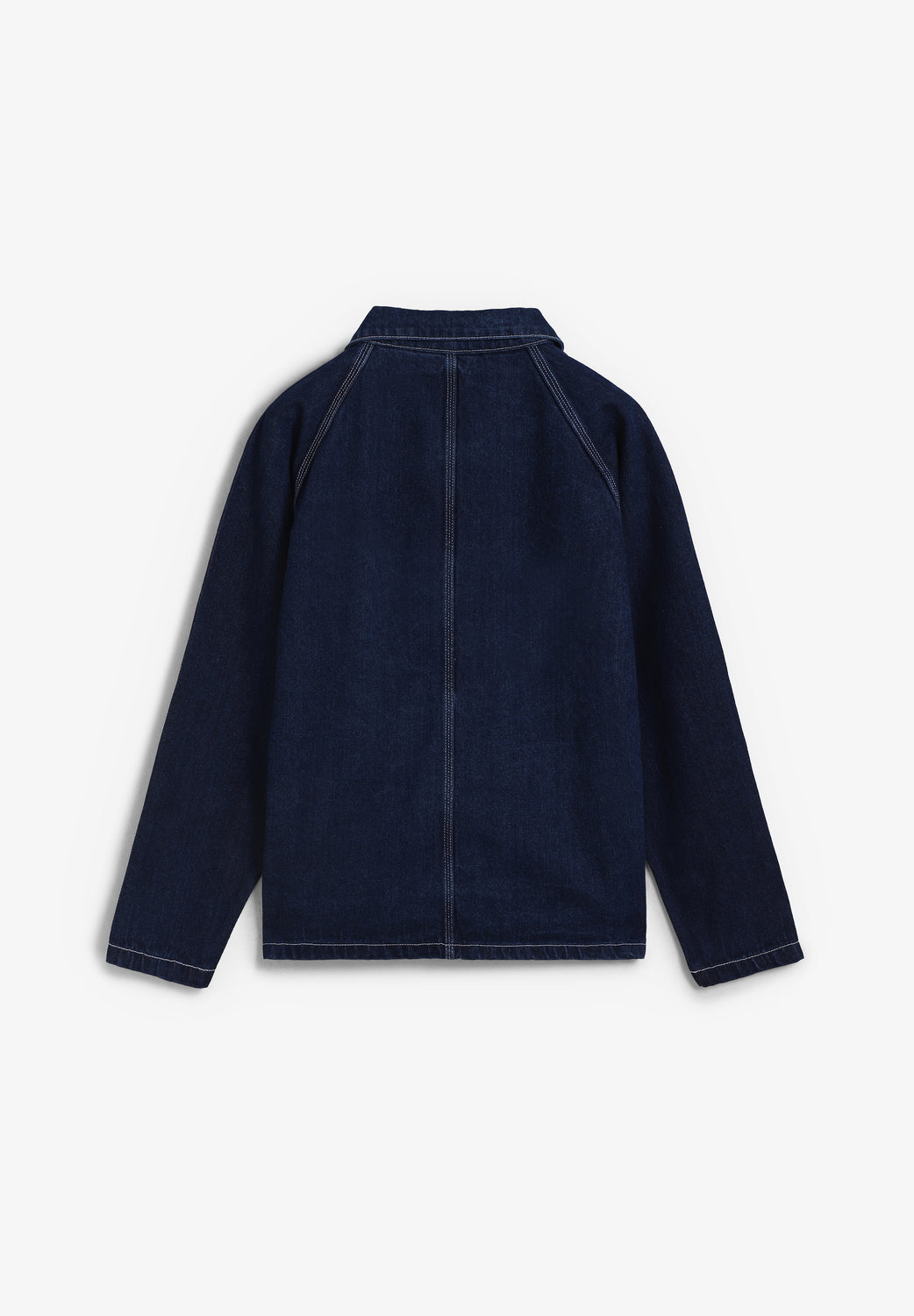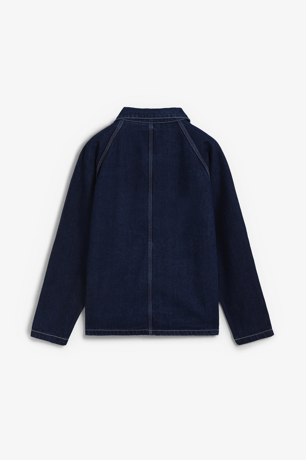 Chaqueta vaquera Service Works confeccionada en mezcla de algodón orgánico GOTS y un ajuste regular. Presenta costuras triples en contraste, mangas raglán, construcción de cuatros bolsillos y cierre con botones. Detalle etiqueta tejida.