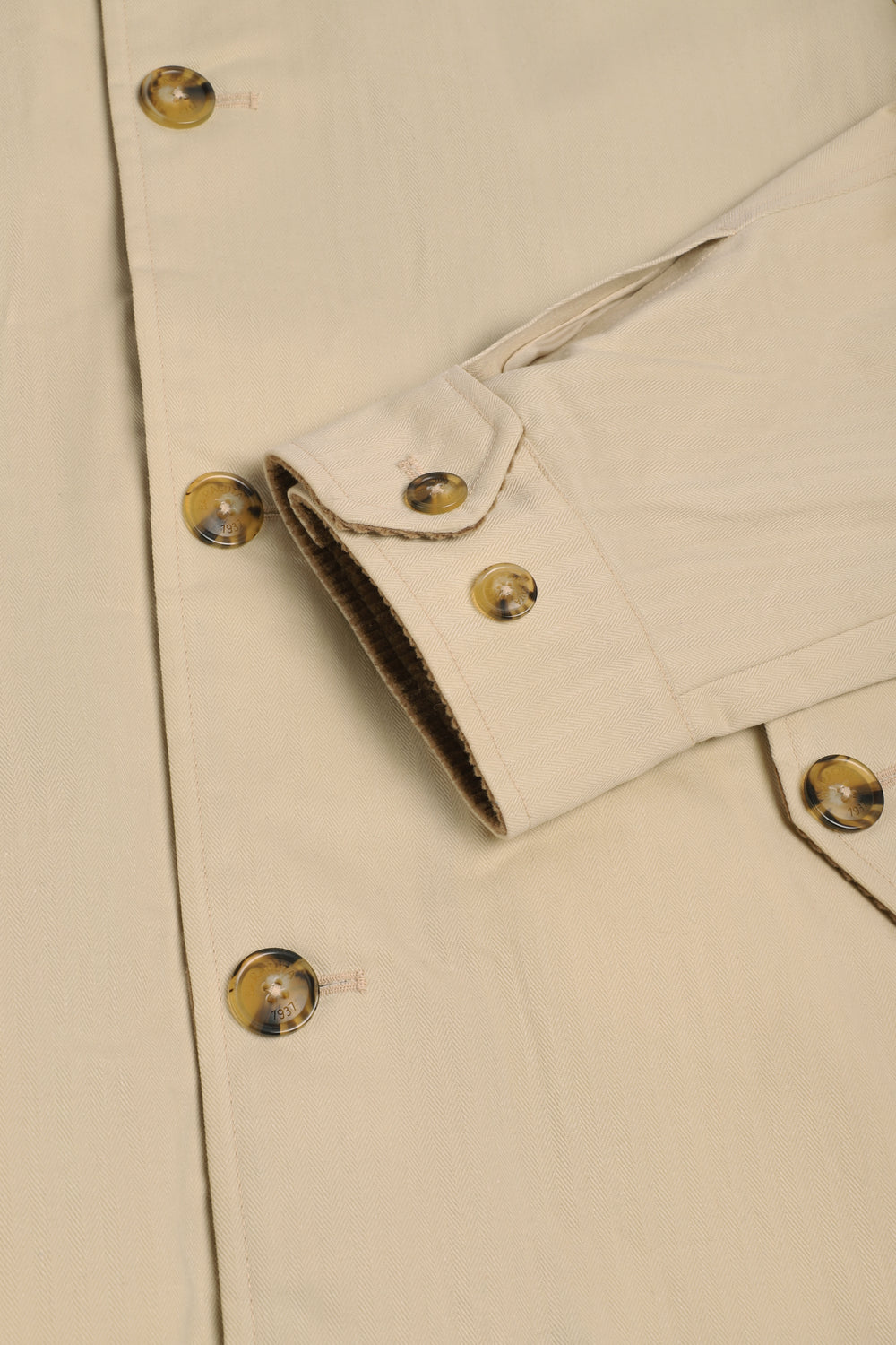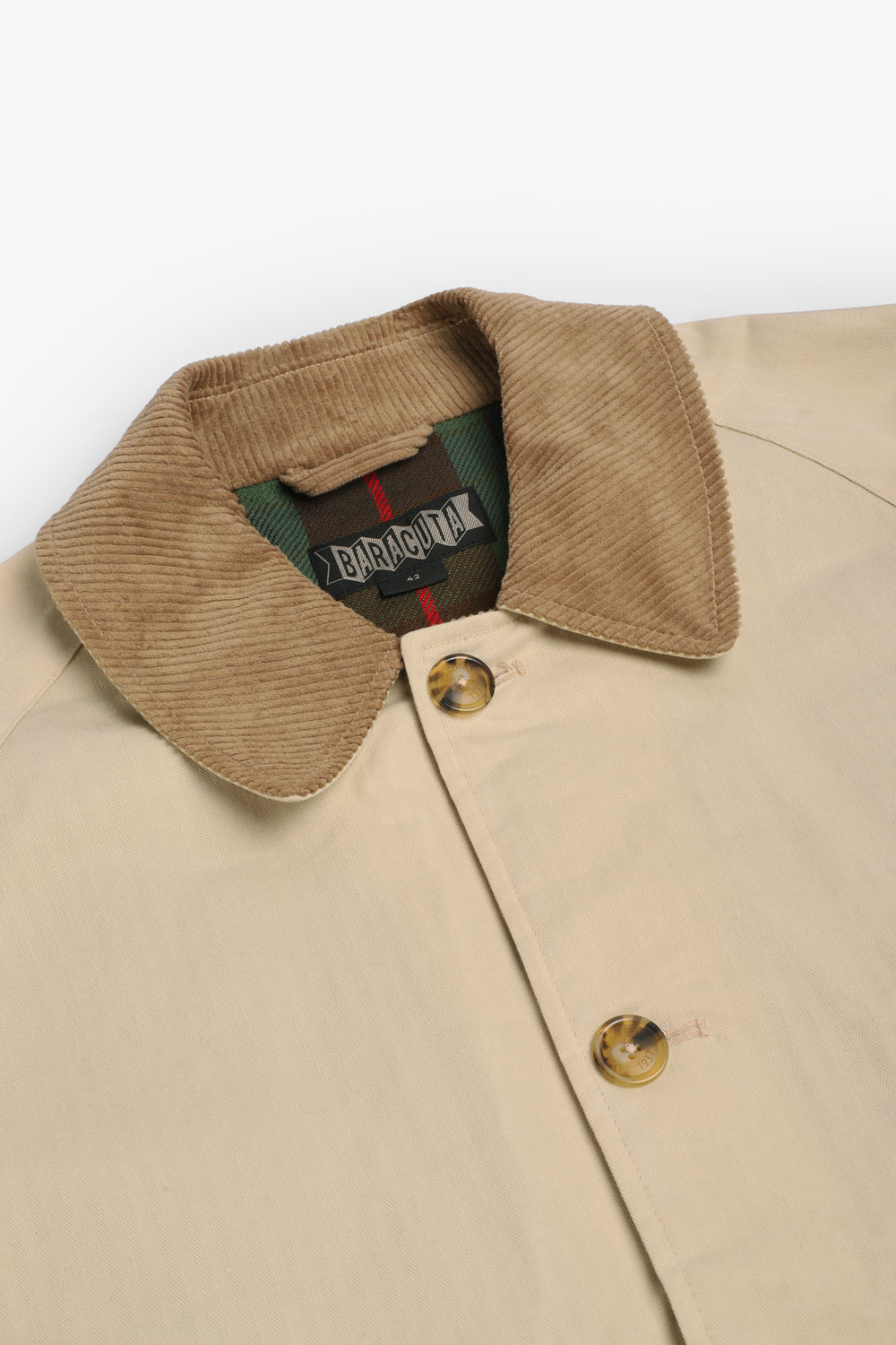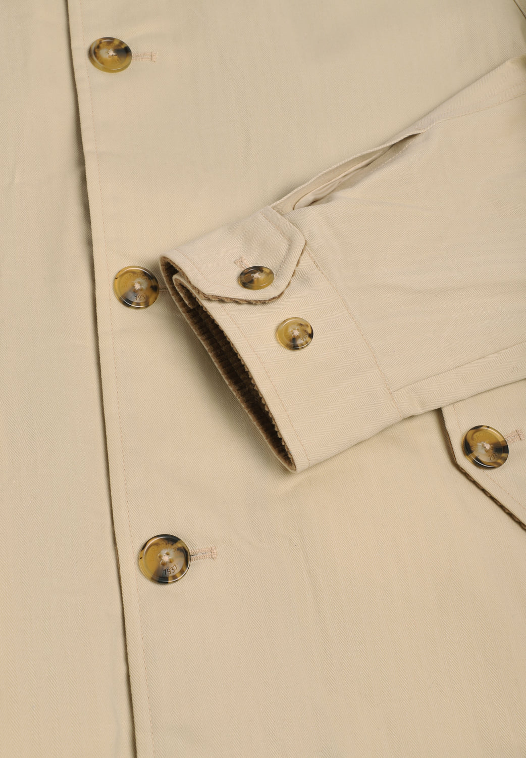 Chaqueta Baracuta confeccionada en 100% algodón y corte holgado. Presenta un acabado encerado que aporta un brillo sutil, detalles funcionales como los bolsillos y los puños ajustables y líneas limpias.
