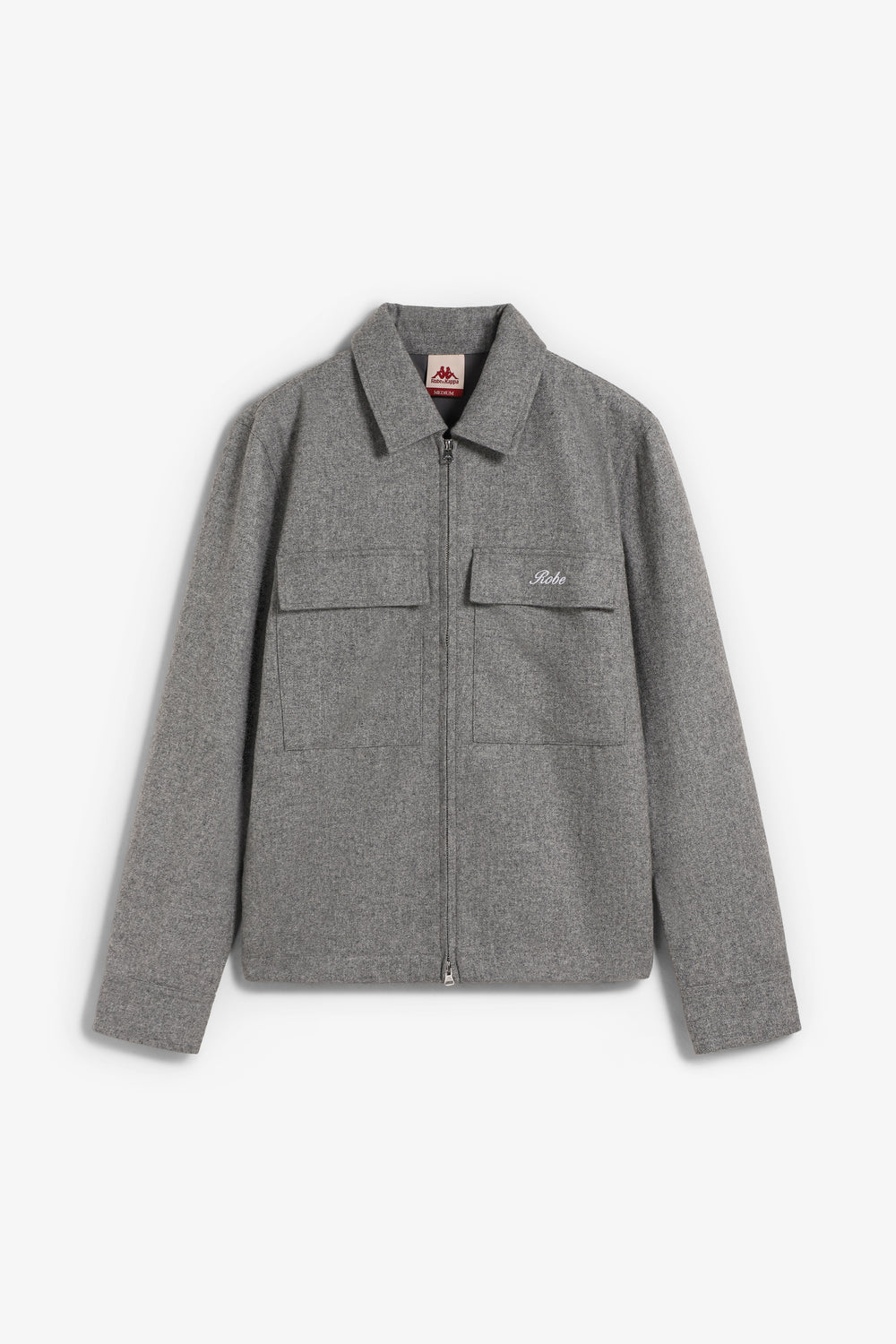 Sobrecamisa Robe Di Kappa confeccionada en 55% poliéster y 45% viscosa. Presenta un bolsillo de solapa aplicado en el pecho, mangas largas, cierre de cremallera de metal y logo Omini aplicado en la parte central de la espalda y lettering de Robe bordado en el bolsillo del pecho izquierdo.