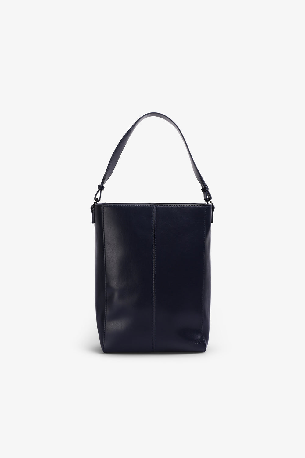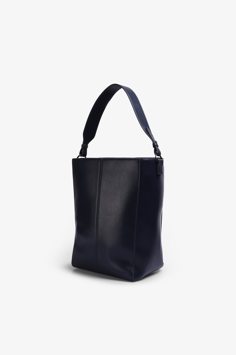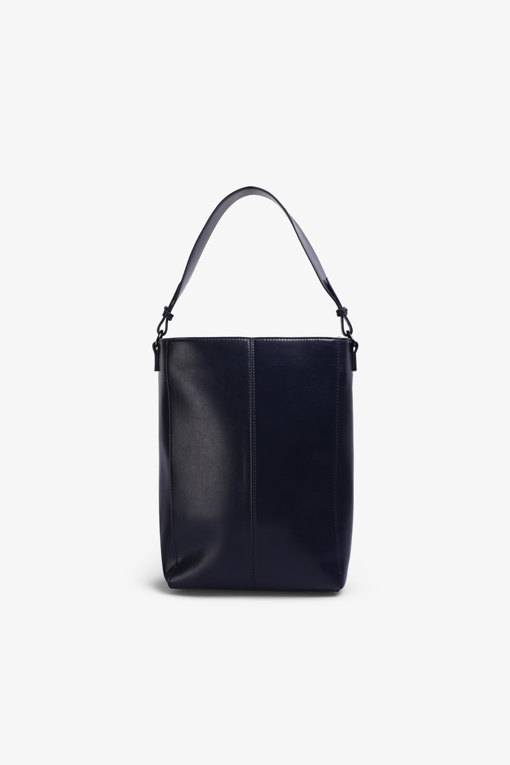 Bolso Hvisk confeccionado en mezcla de materiales: 40% poliéster reciclado, 18% poliuretano reciclado, 18% poliuretano, 14% carbonato de calcio y 10% madera. Cuenta con un compartimento con dos bolsillos interiores y un bolsillo interior con cremallera, correa larga ajustable y cierre de cremallera.
