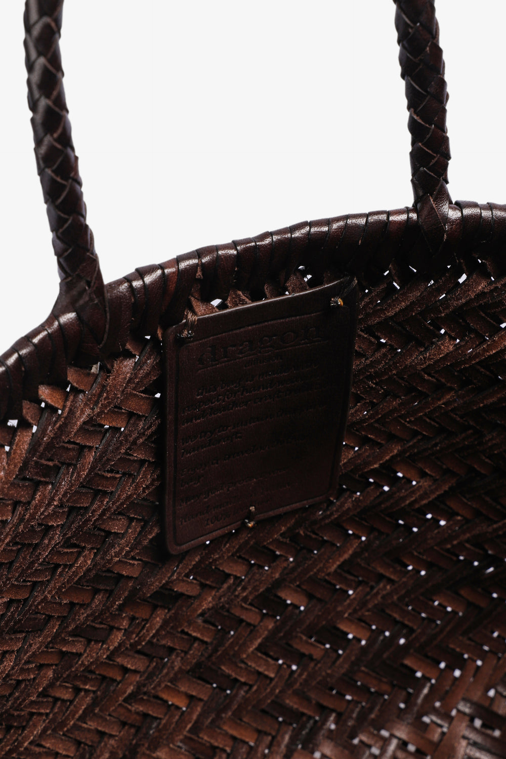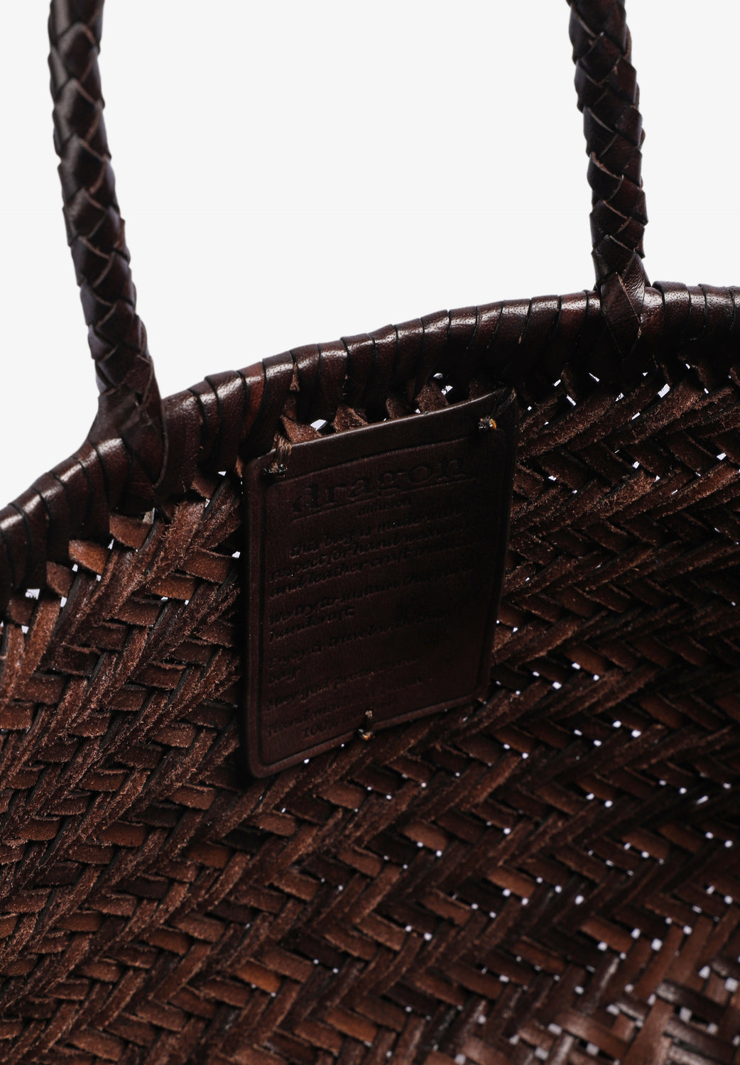 Bolso Dragon Diffusion tejido a mano en suave piel de becerro de búfalo. Su tejido de chevron diagonal es lo que lo hace único. Fiel a las técnicas tradicionales de cestería, la cesta viene sin forro y con la parte superior abierta.