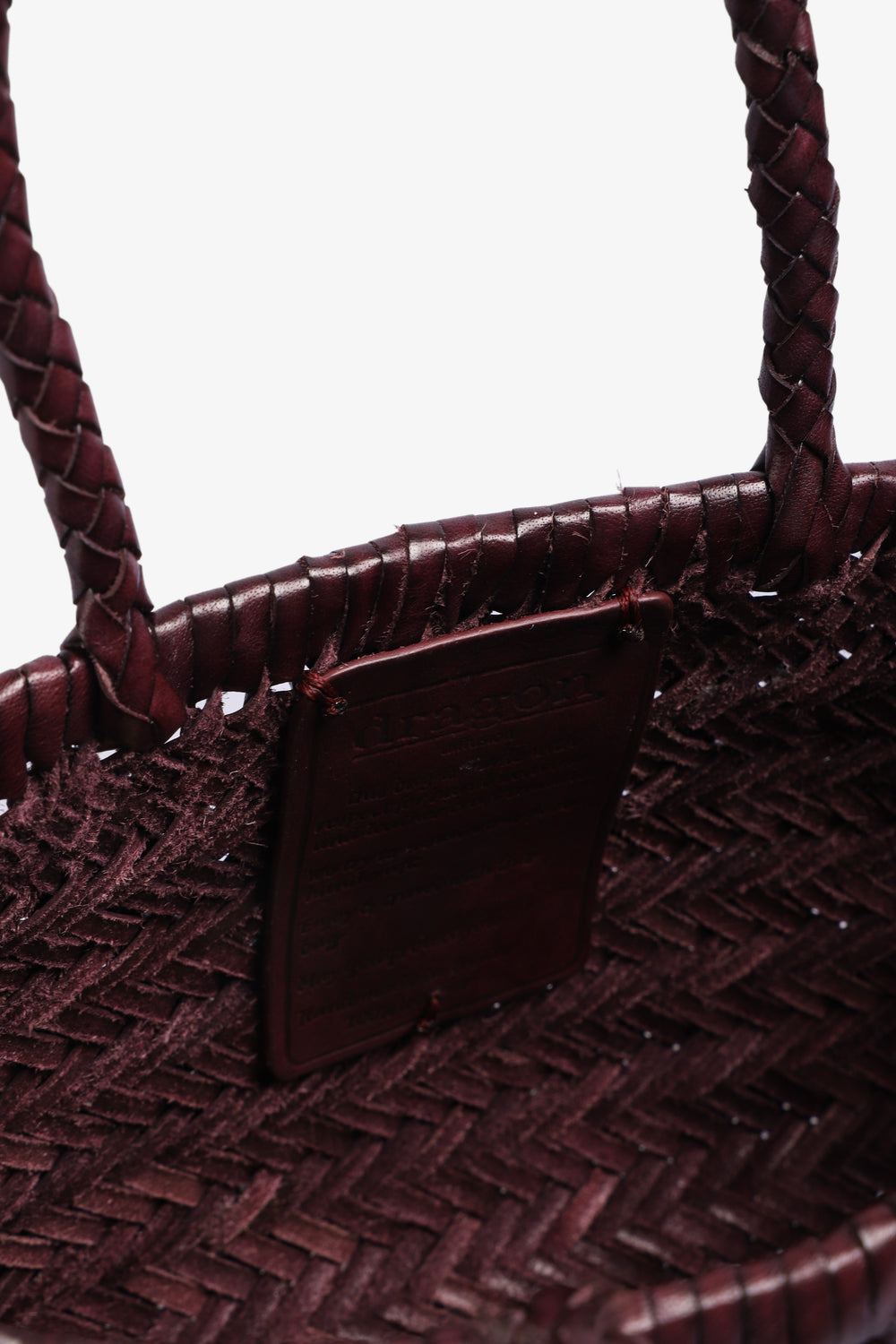 Bolso Dragon Diffusion tejido a mano con maestría en piel de becerro de búfalo. Este minibolso captura la esencia de la cestería tradicional. Es ligero y versátil, ideal para llevar solo lo esencial.