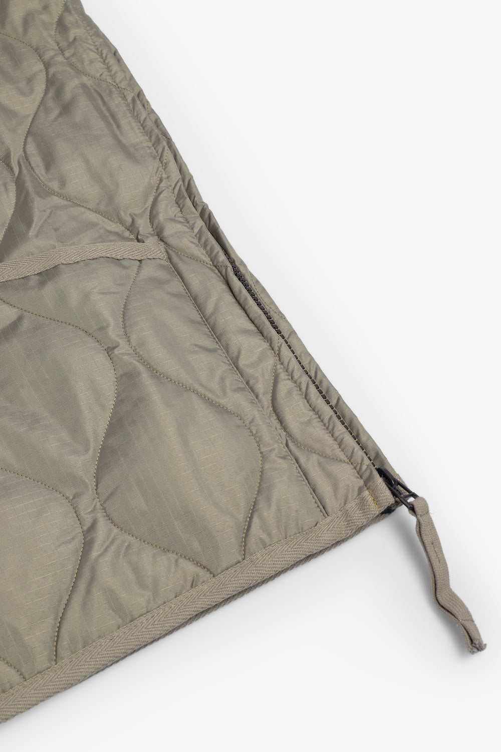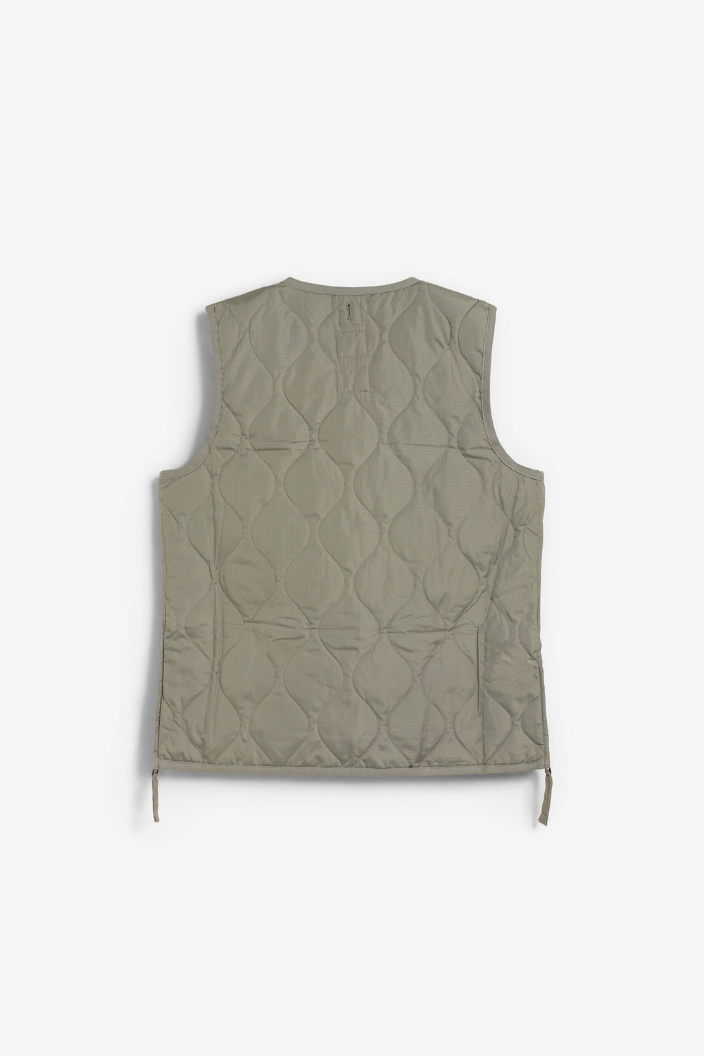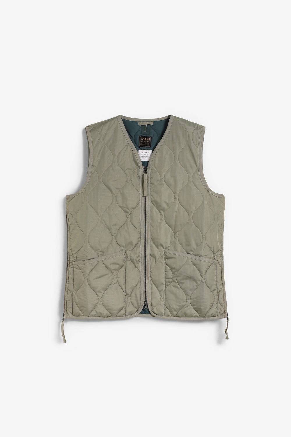 Chaleco Taion confeccionado en un tejido ligero y suave y relleno de plumón 800FP. Presenta una clásica puntada acolchada de cebolla que realza su estilo militar, cremallera bidireccional y aberturas laterales que aumentan la libertad de movimiento y facilitan el acceso a los bolsillos del pantalón.