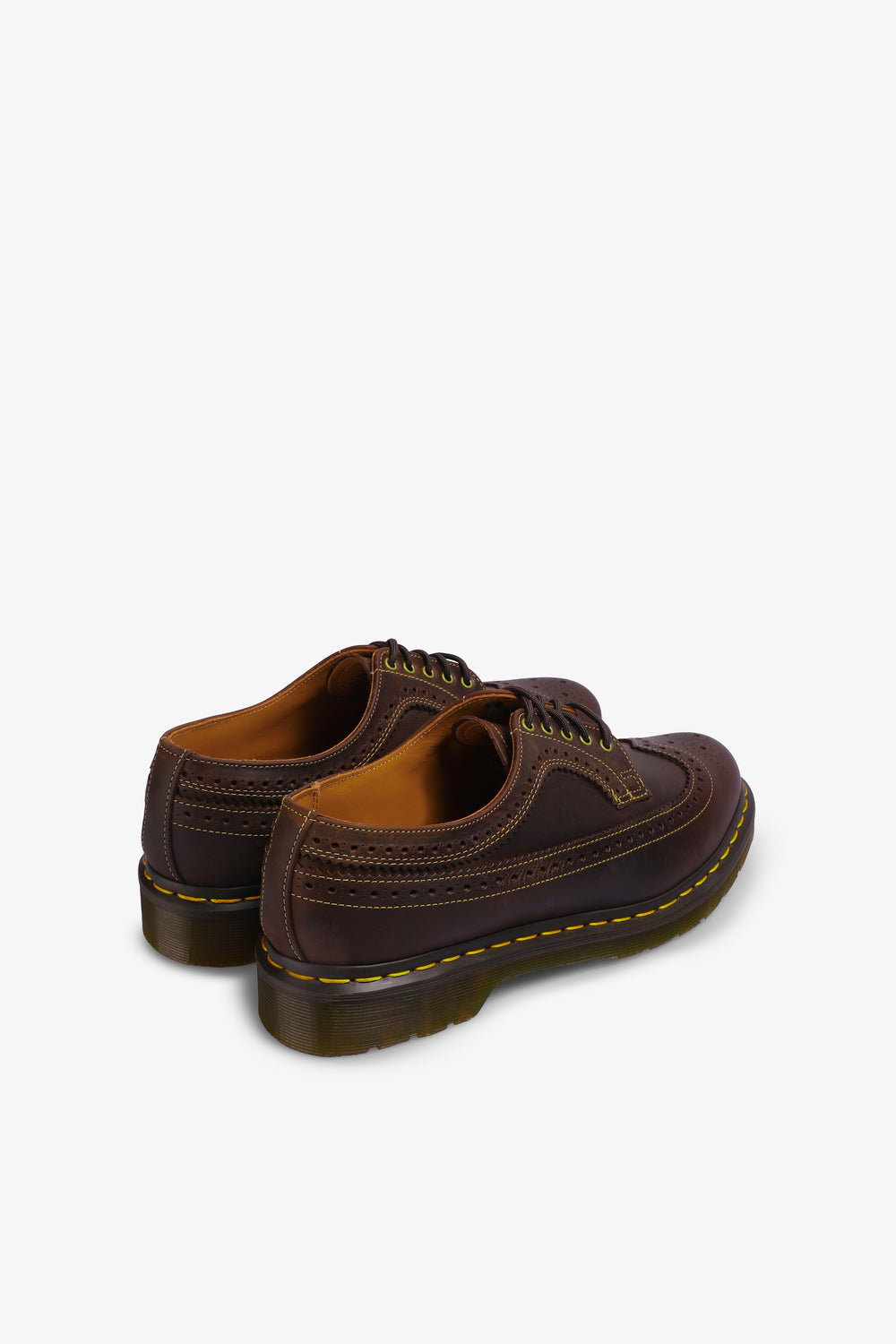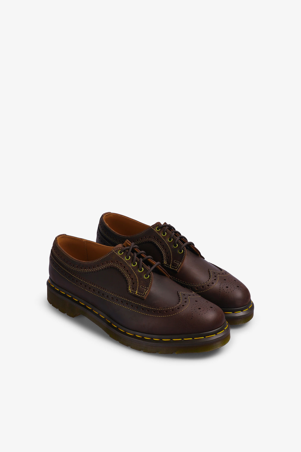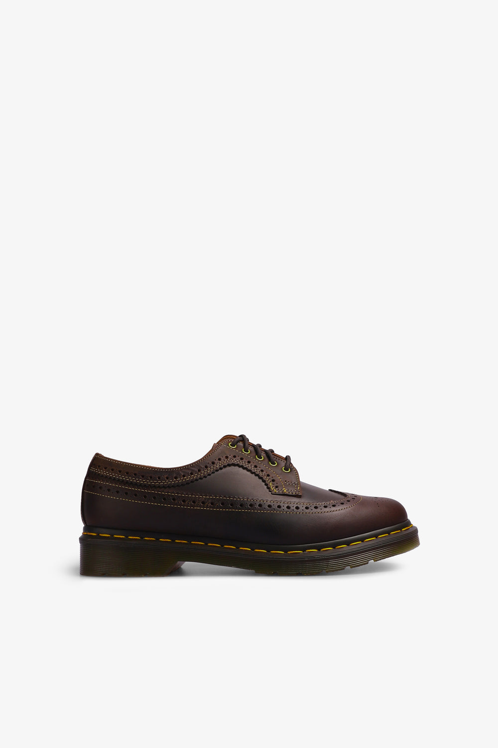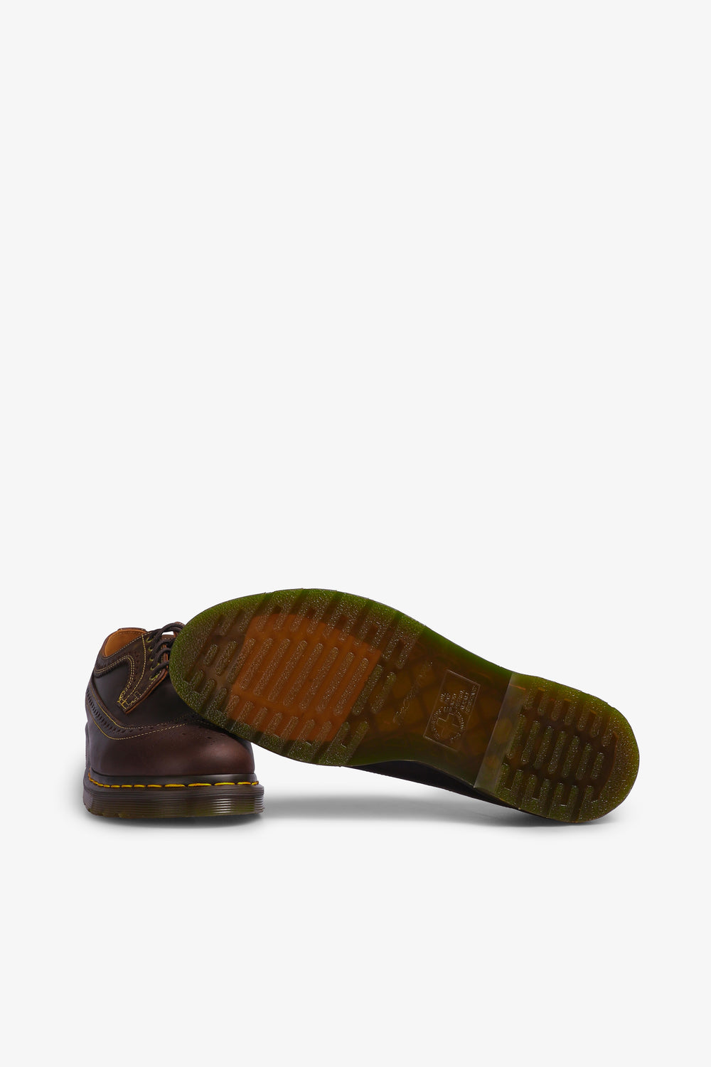 Zapatos Dr Martens confeccionados en piel Crazy Horse, que mejora con el paso del tiempo. Modelo clásico adornado con calados y costuras en contraste, asentados sobre una suela DM´s reforzada con el resistente pespunte amarillo y acabados con detalles dorado envejecido y cordones tonales.