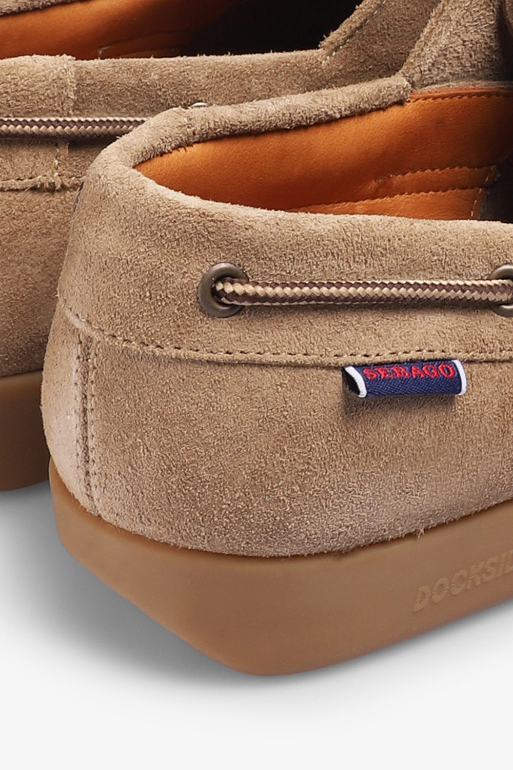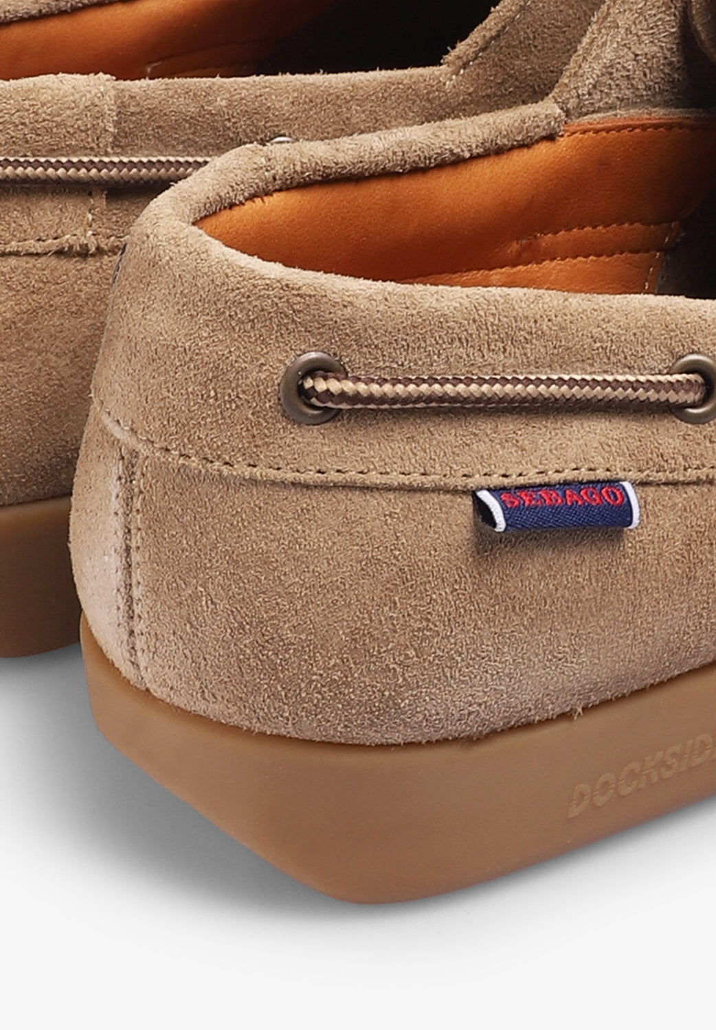 Zapatos Sebago confeccionados en piel flor y sin forro para una sensación aún más ligera y relajada. Presentan un faldón cosido a mano, cordones laterales bicolor y suela de goma con el patrón "Gary Jobson" personalizado. Presentan una suela de goma monobloque con un tacón de 30mm.