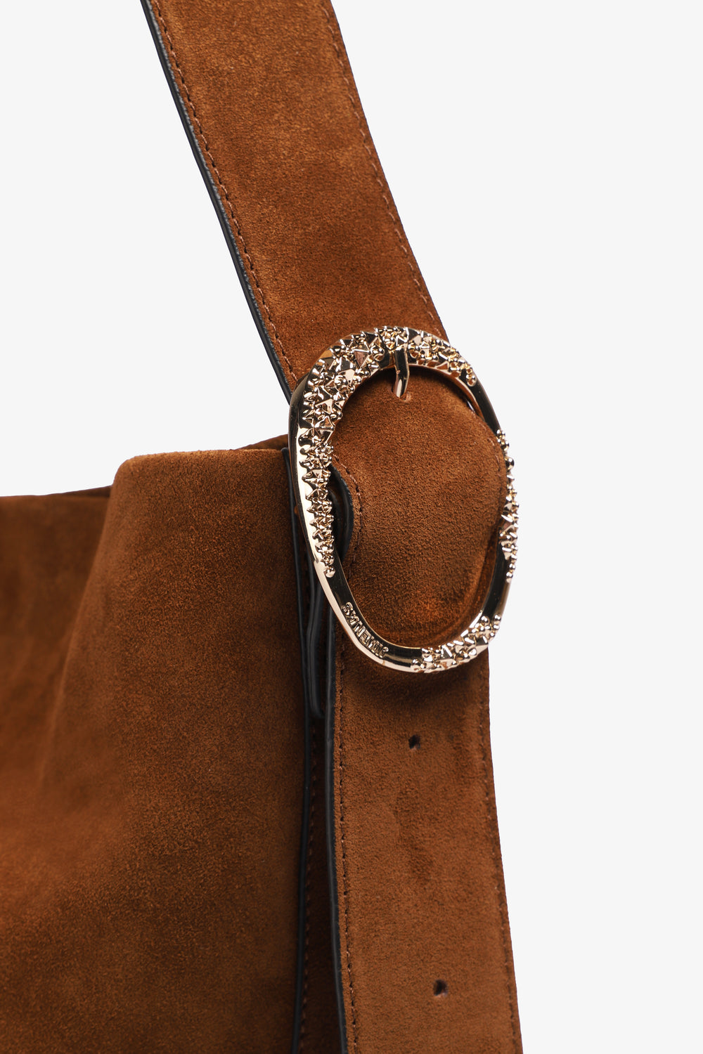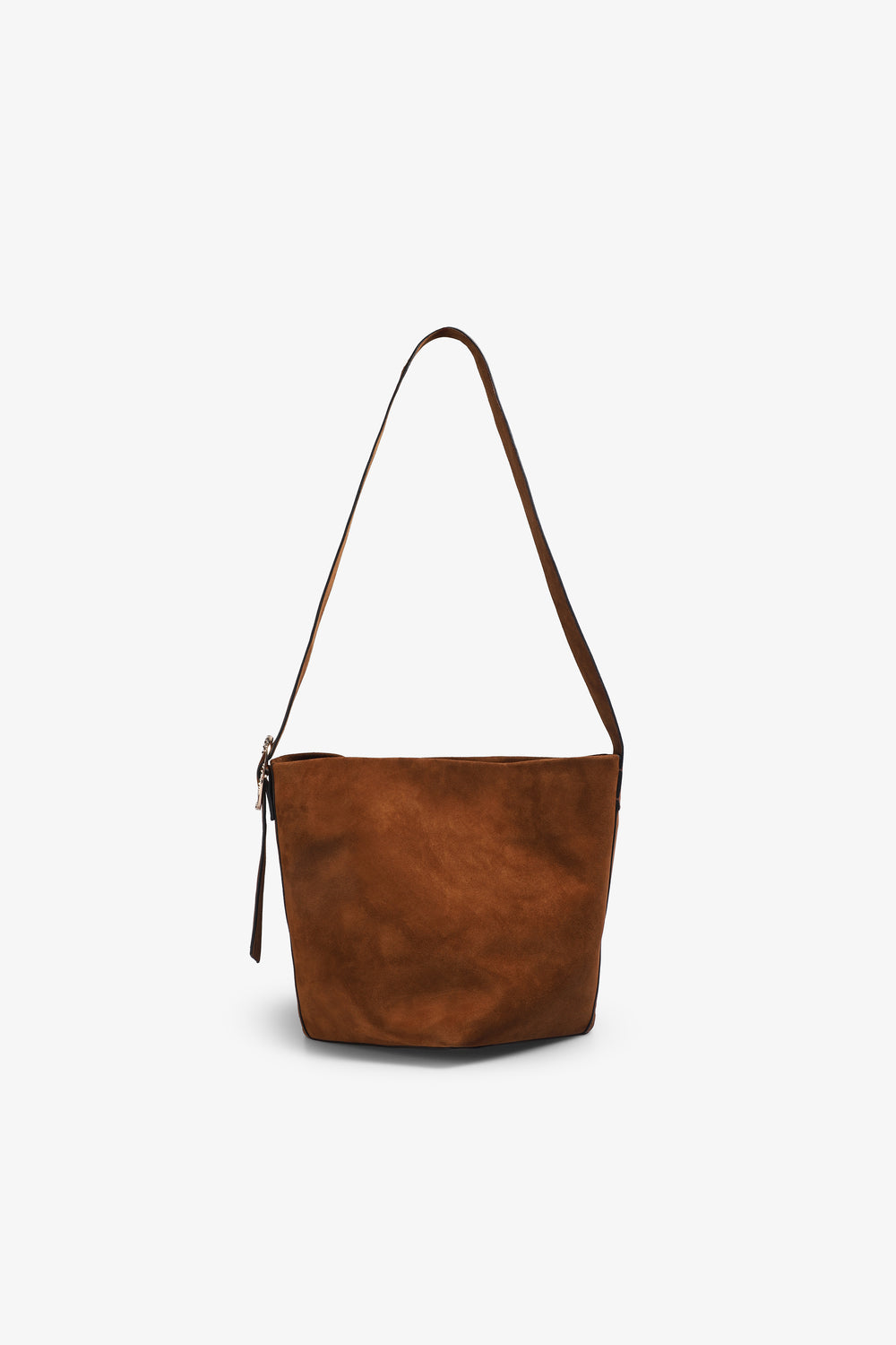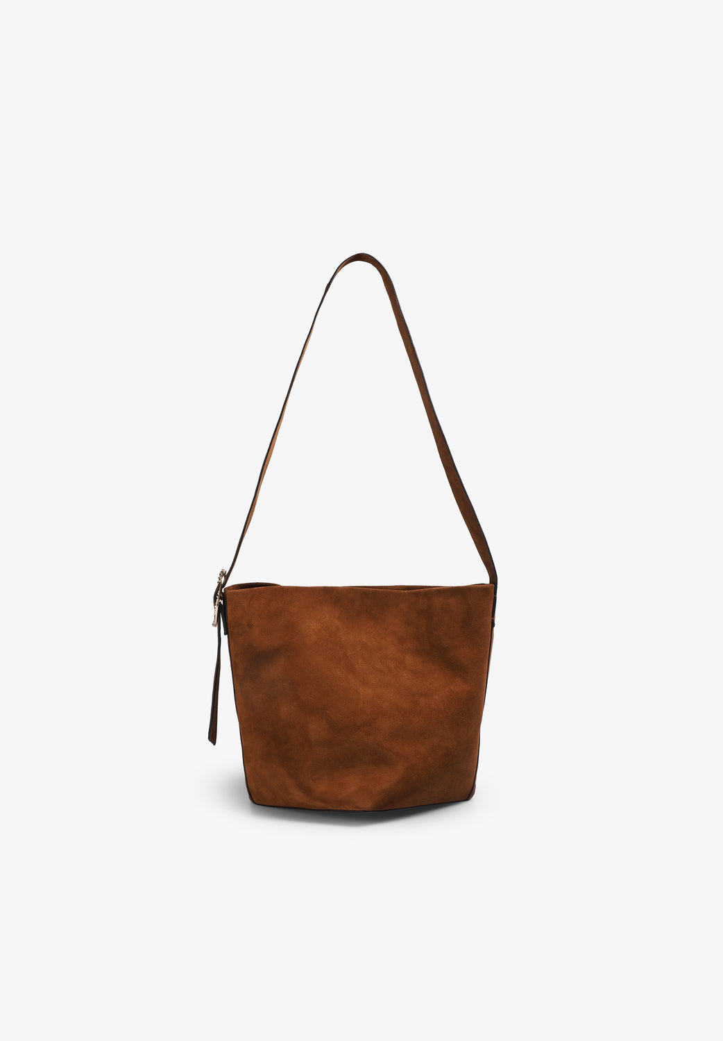 Bolso Jimenas confeccionado en una piel de serraje premium de alta calidad. El asa se puede regular para llevar colgado o cruzado gracias a la icónica hebilla XL. En su interior, cerrado por un imán, se encuentra un bolsillo. El diseño de la base es irregular, dos esquinas en pico y dos más redondas.