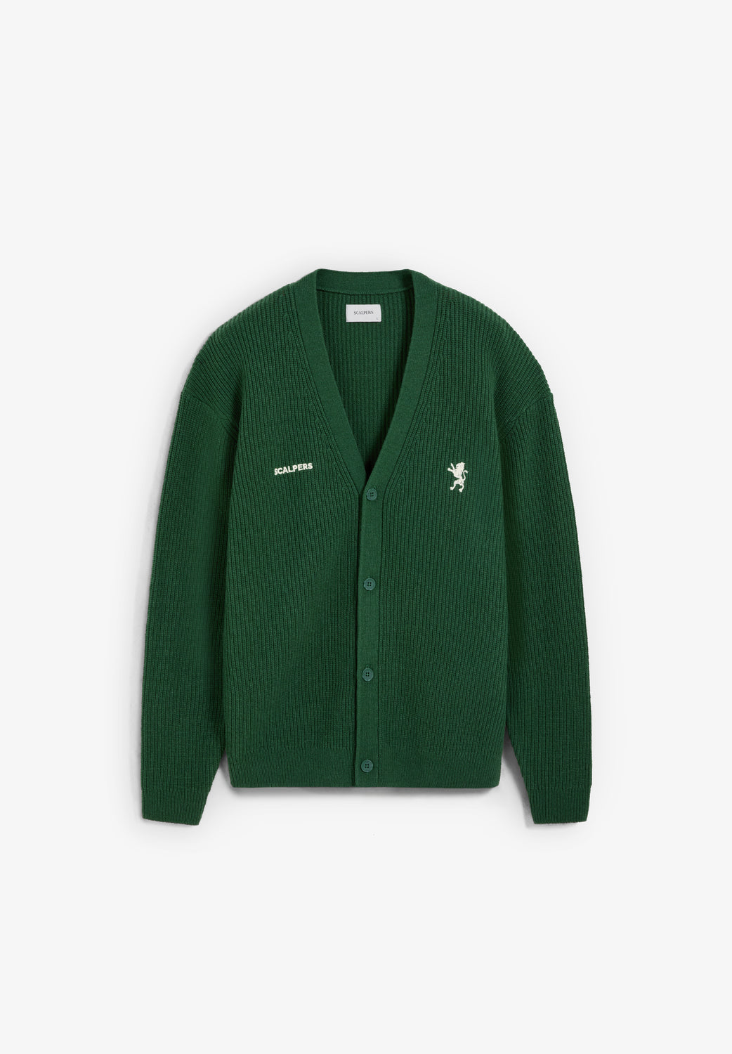 Cárdigan de punto confeccionado en mezcla de lana. Cuello pico y manga larga. Logotipos bordados en frontal. Acabados en rib. Detalle de etiqueta en lateral izquierdo. Cierre frontal de botonadura.