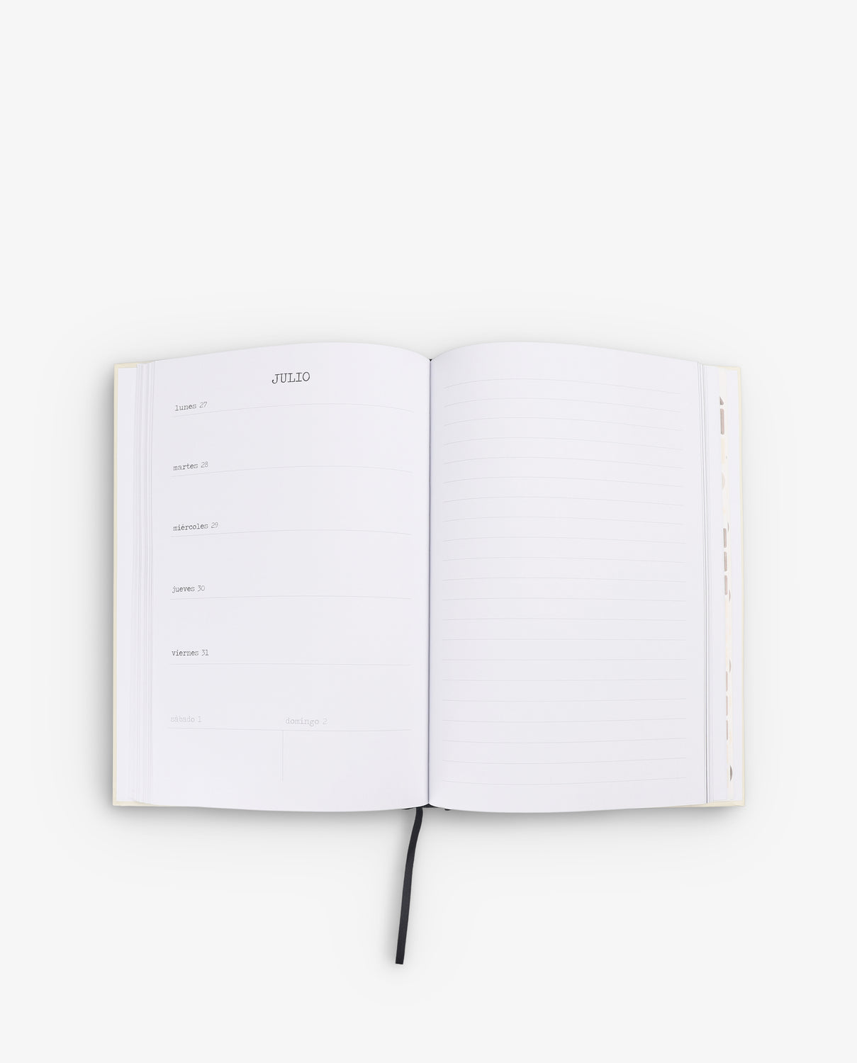 Agenda 2026. Dividida por semanas. Pasta dura con tejido.