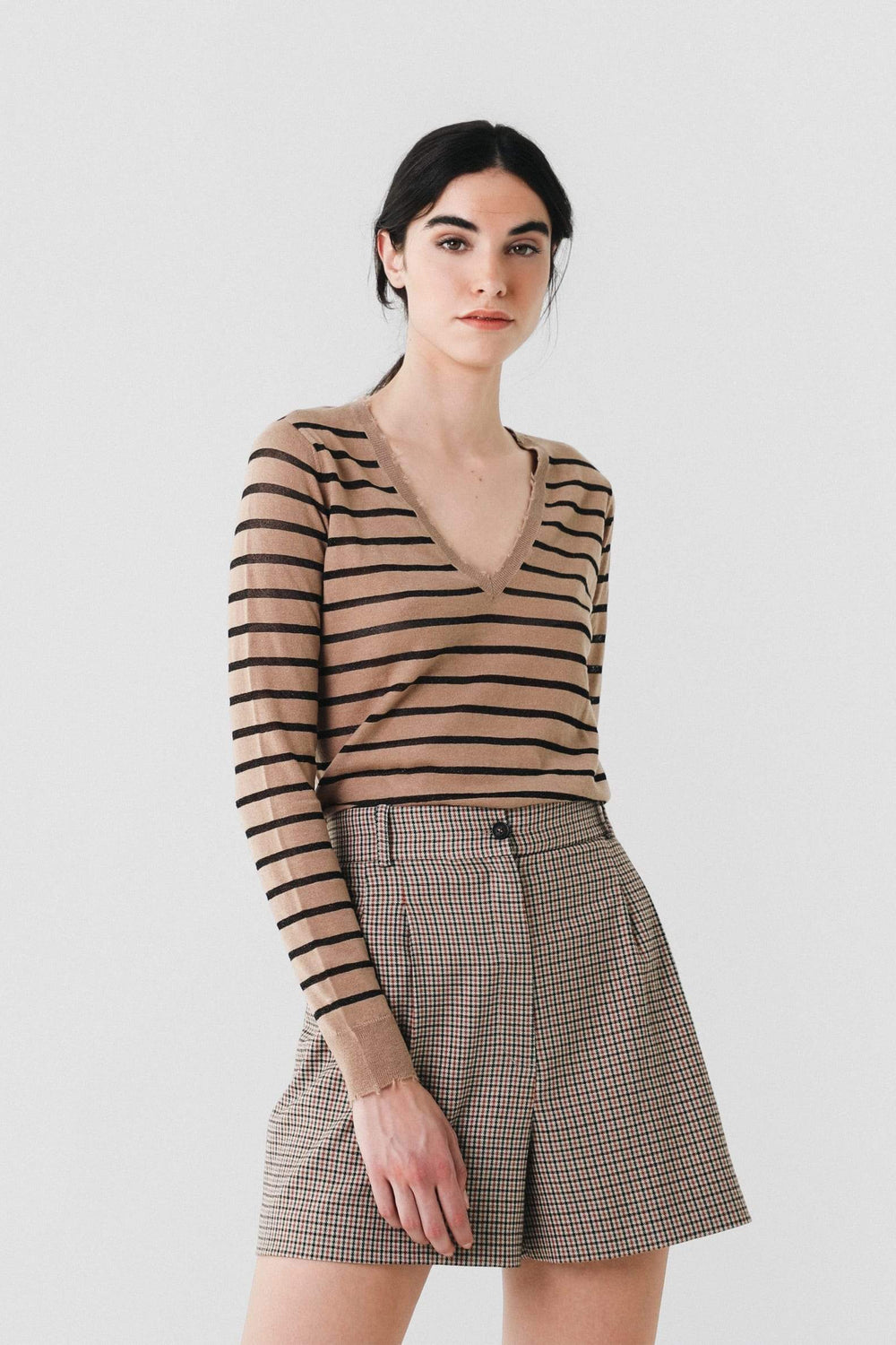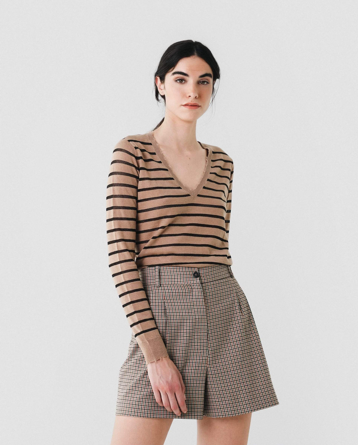 Bermudas de cuadros sastreras. Corte Regular Fit con tiro alto, cierre con cremallera y botón y bolsillos laterales.