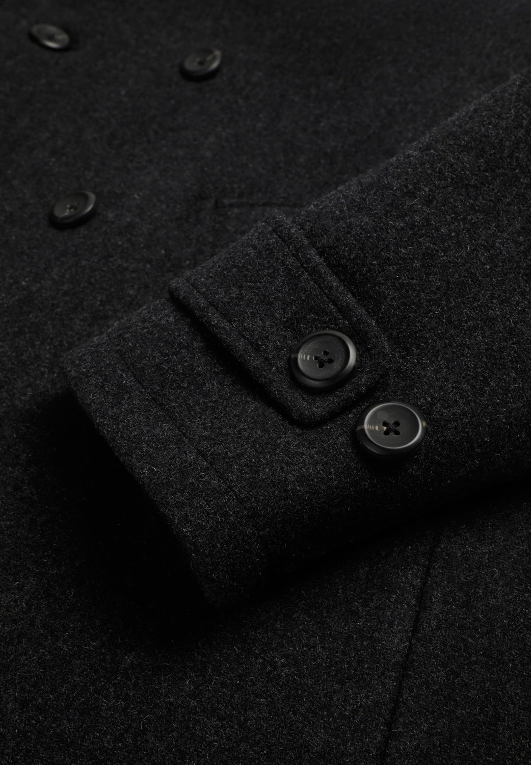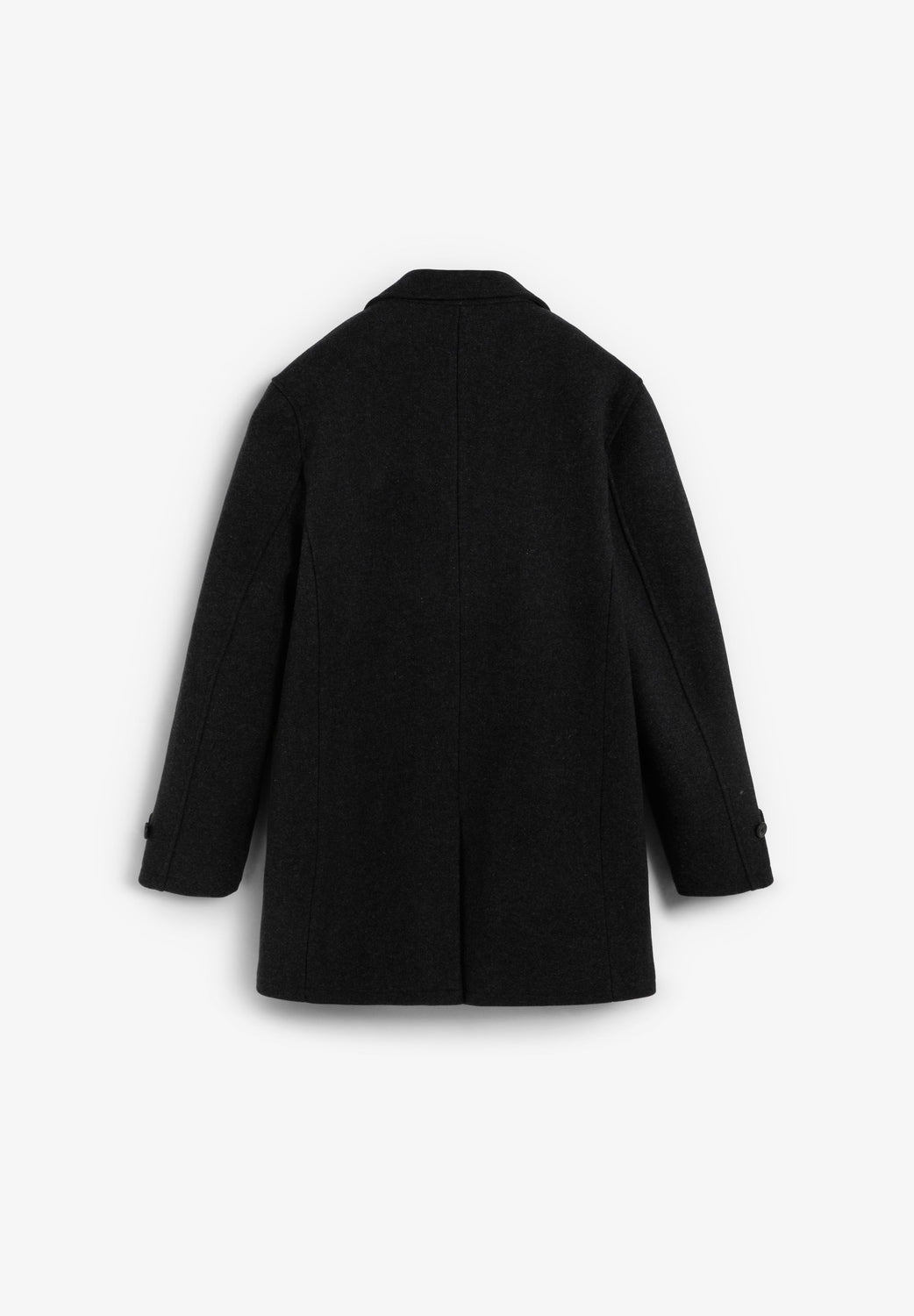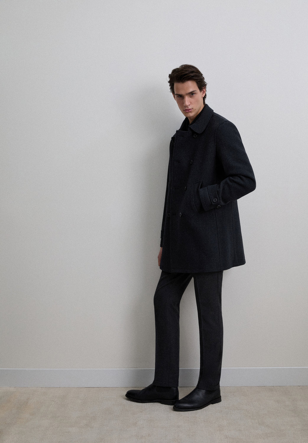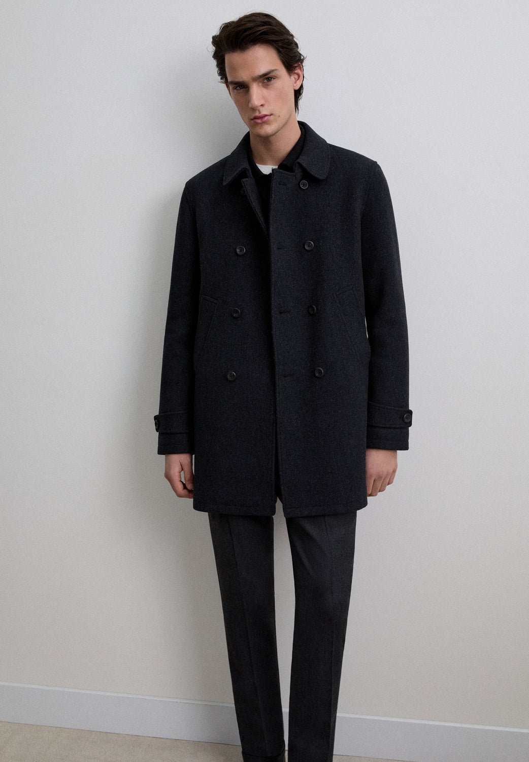 Abrigo cruzado confeccionado en mezcla de lana. Abotonadura en frontal. Bolsillos vivos inclinados en frontal. Bolsillo interior. Detalle de puño con trabillas.