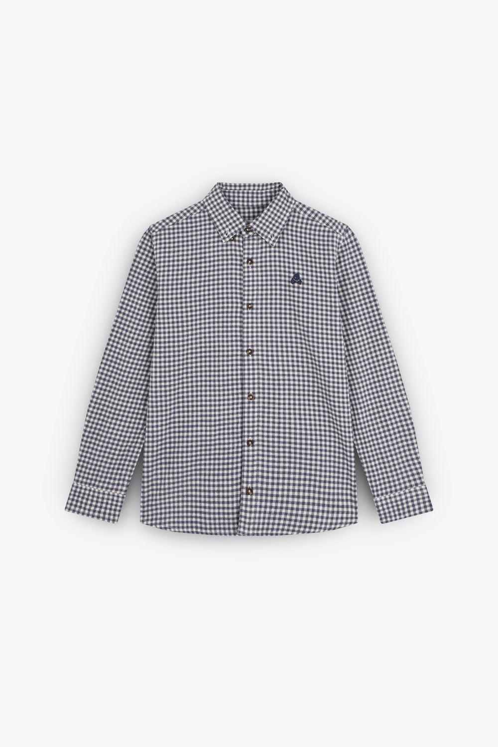 Camisa Oxford confeccionada en 100% algodón BCI. Estampado de cuadros. Regular Fit. Cuello clásico y cierre con botones. Manga larga con puños terminados mediante botón. Calavera bordada en pecho a contraste.