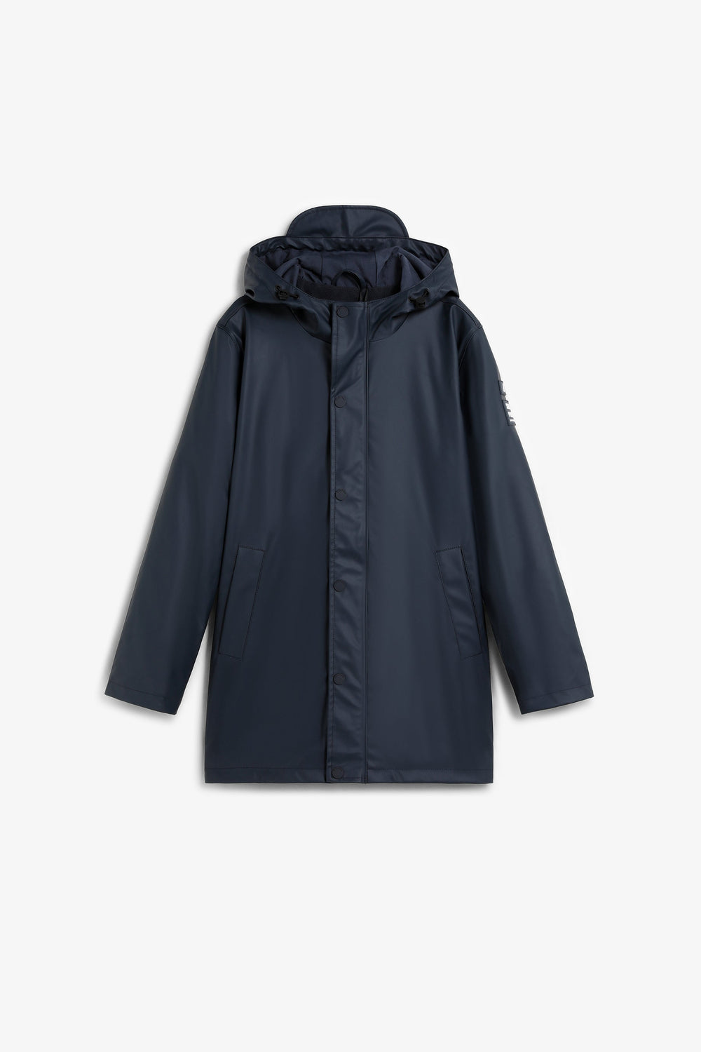 Parka impermeable con capucha ajustable. Bolsillos laterales con tapeta y snap. Forro interior sintético. Detalle de parche engomado con logo y calavera. Cierre mediante abotonadura. Manga larga.