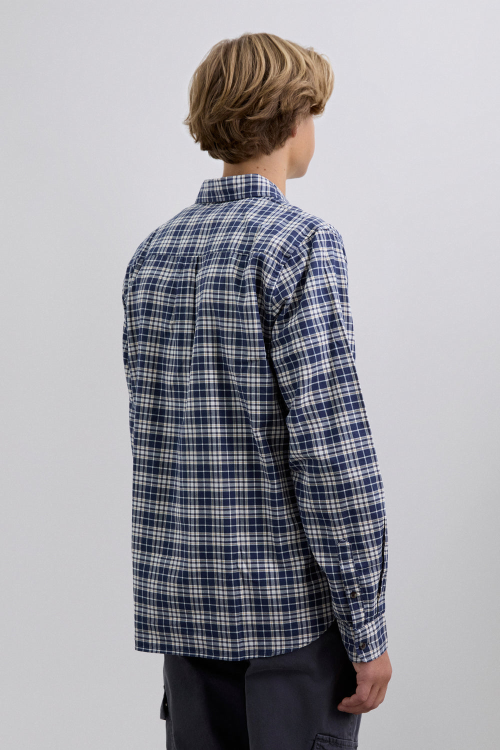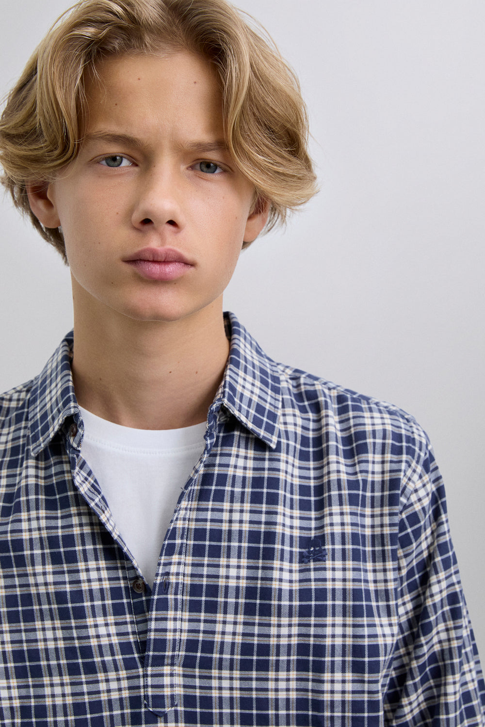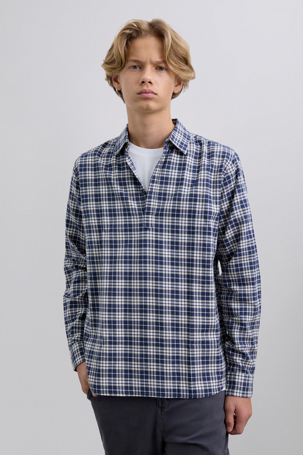Camisa polera confeccionada en 100% algodón BCI. Estampado de cuadros. Cierre frontal mediante botones. Manga larga. Puños ajustable mediante botones. Detalle de calavera bordada a tono en el pecho.