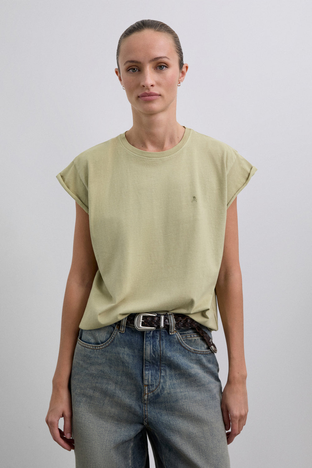 Camiseta confeccionada en 100% algodón orgánico. Corte regular fit, cuello redondo y manga sisa. Detalle de logo bordado a tono en pecho.