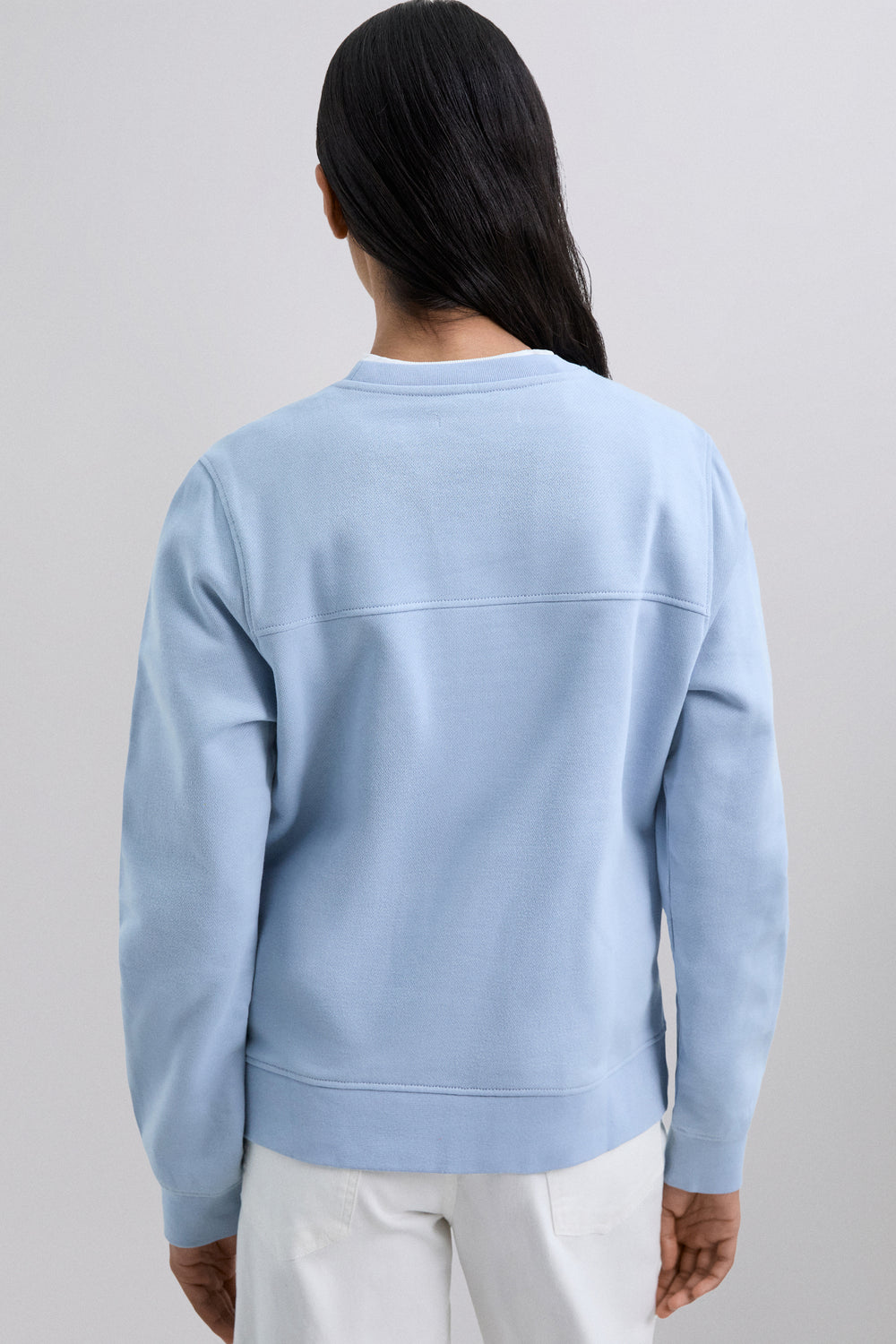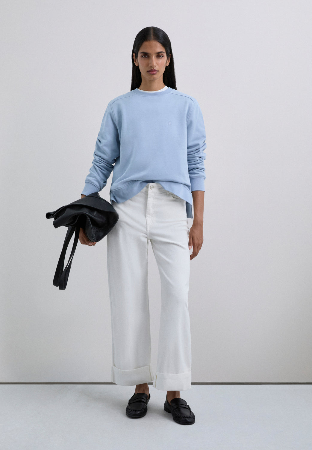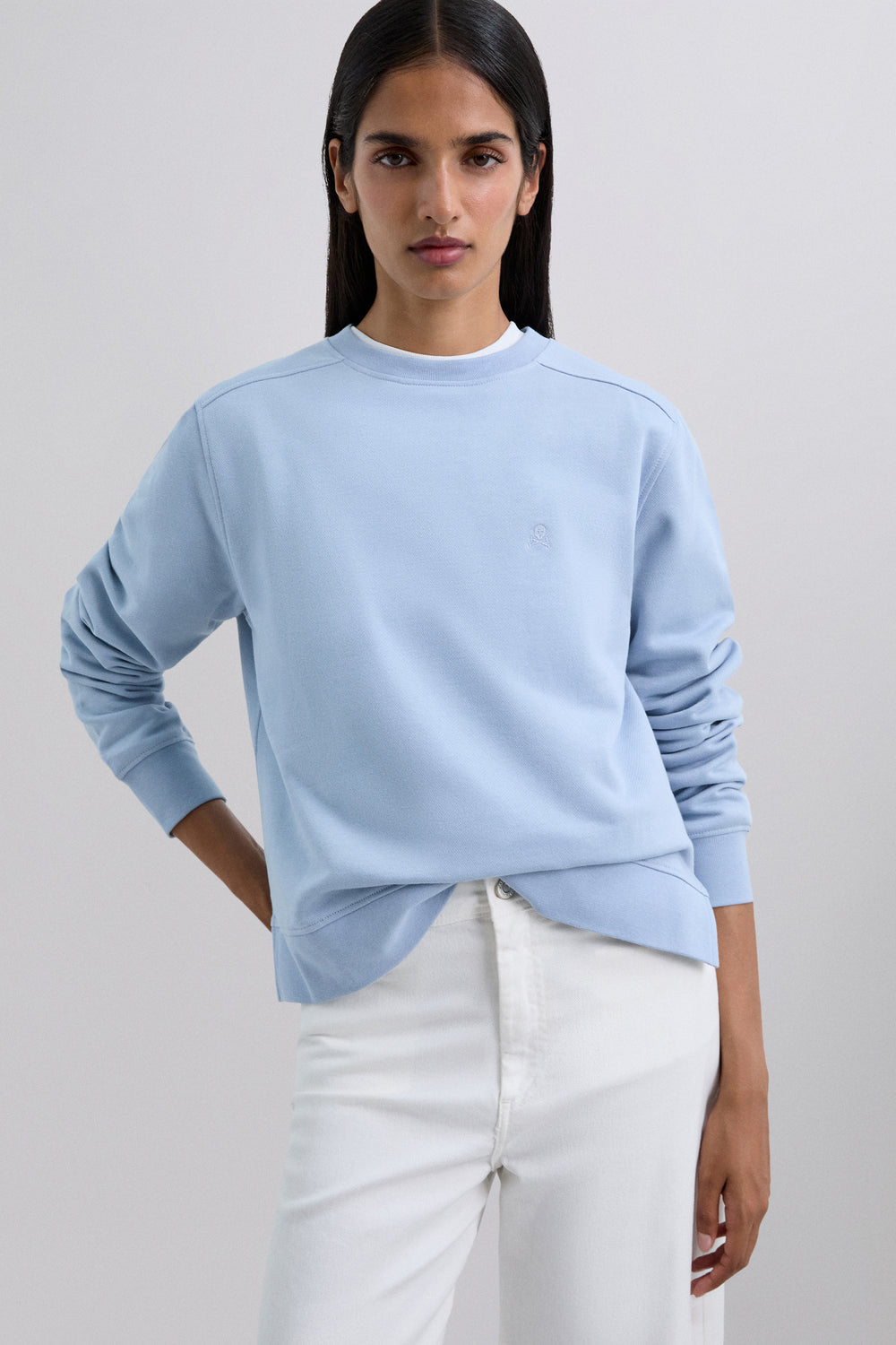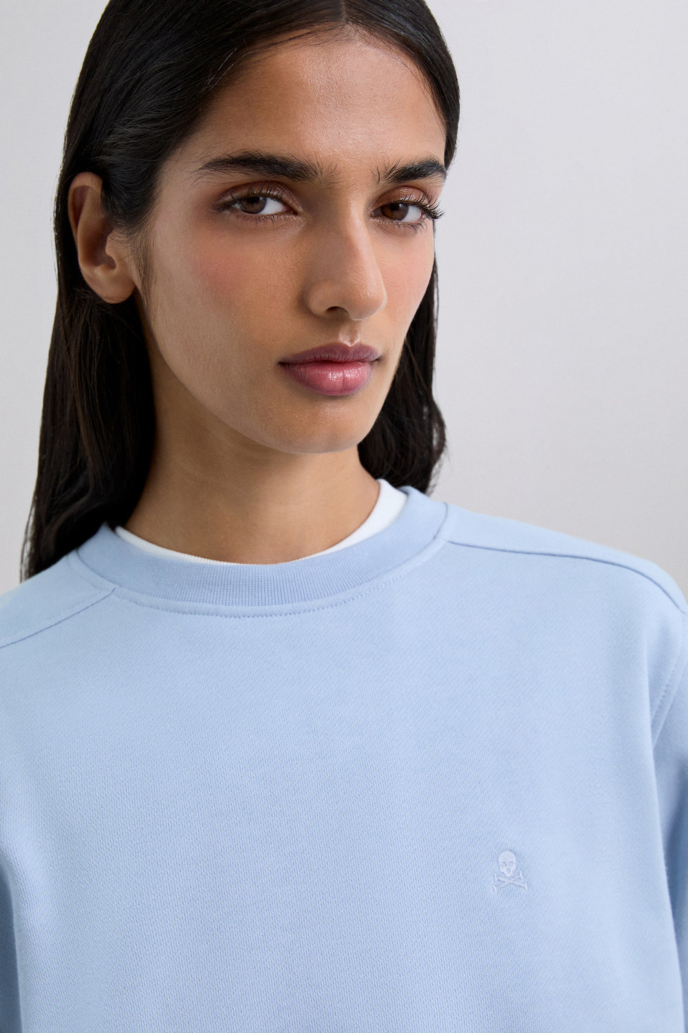 Sudadera confeccionada en 100% algodón BCI. Corte regular fit, cuello redondo y manga larga con puños acabados en rib. Bajo asimétrico, parte trasera alargada. Detalle de calavera bordada en pecho.