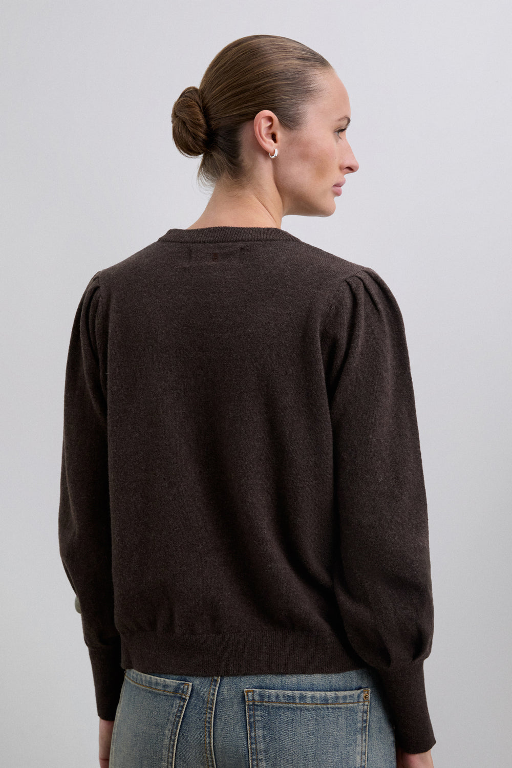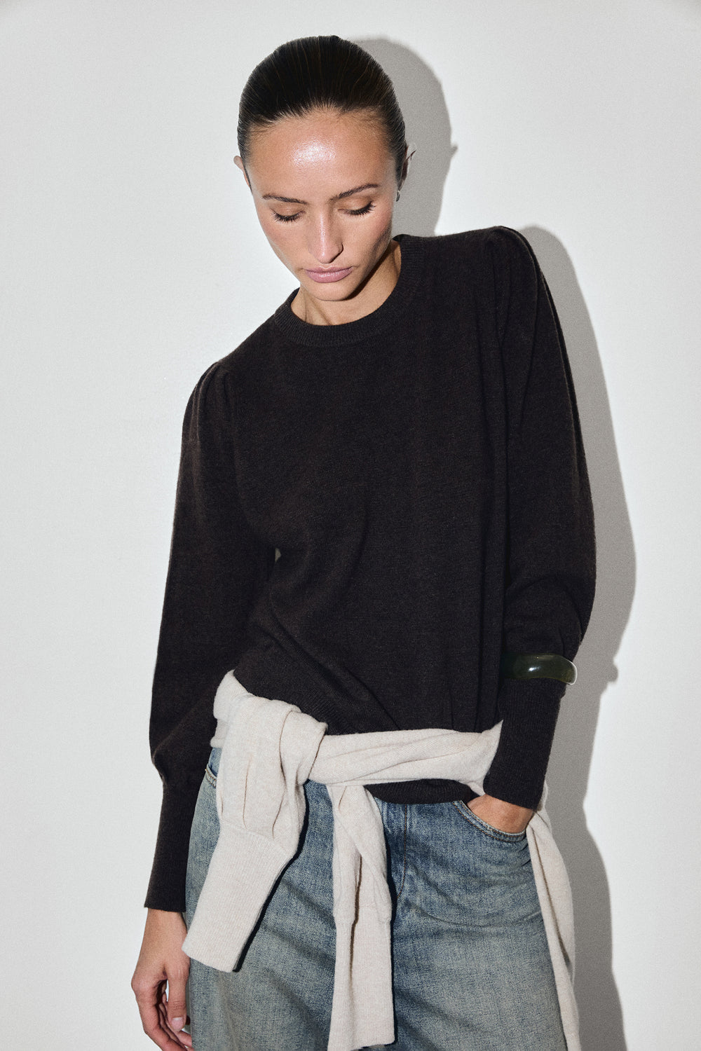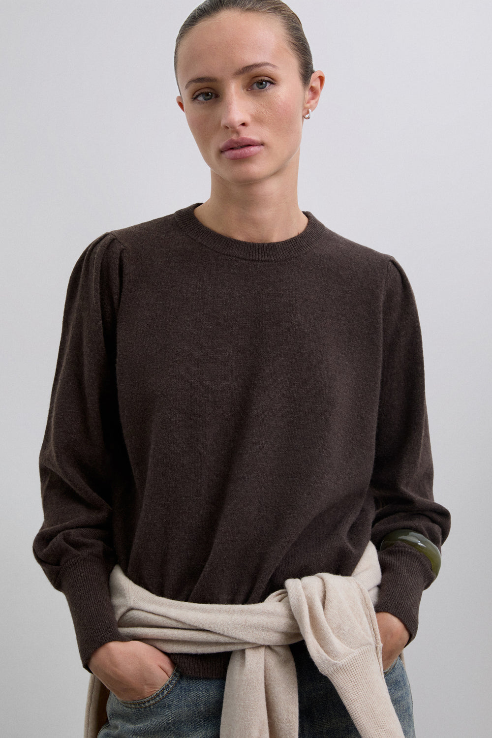 Jersey confeccionado en mezcla con lana. Regular fit. Cuello redondo. Manga larga ligeramente abullonada con puños acabados en rib.
