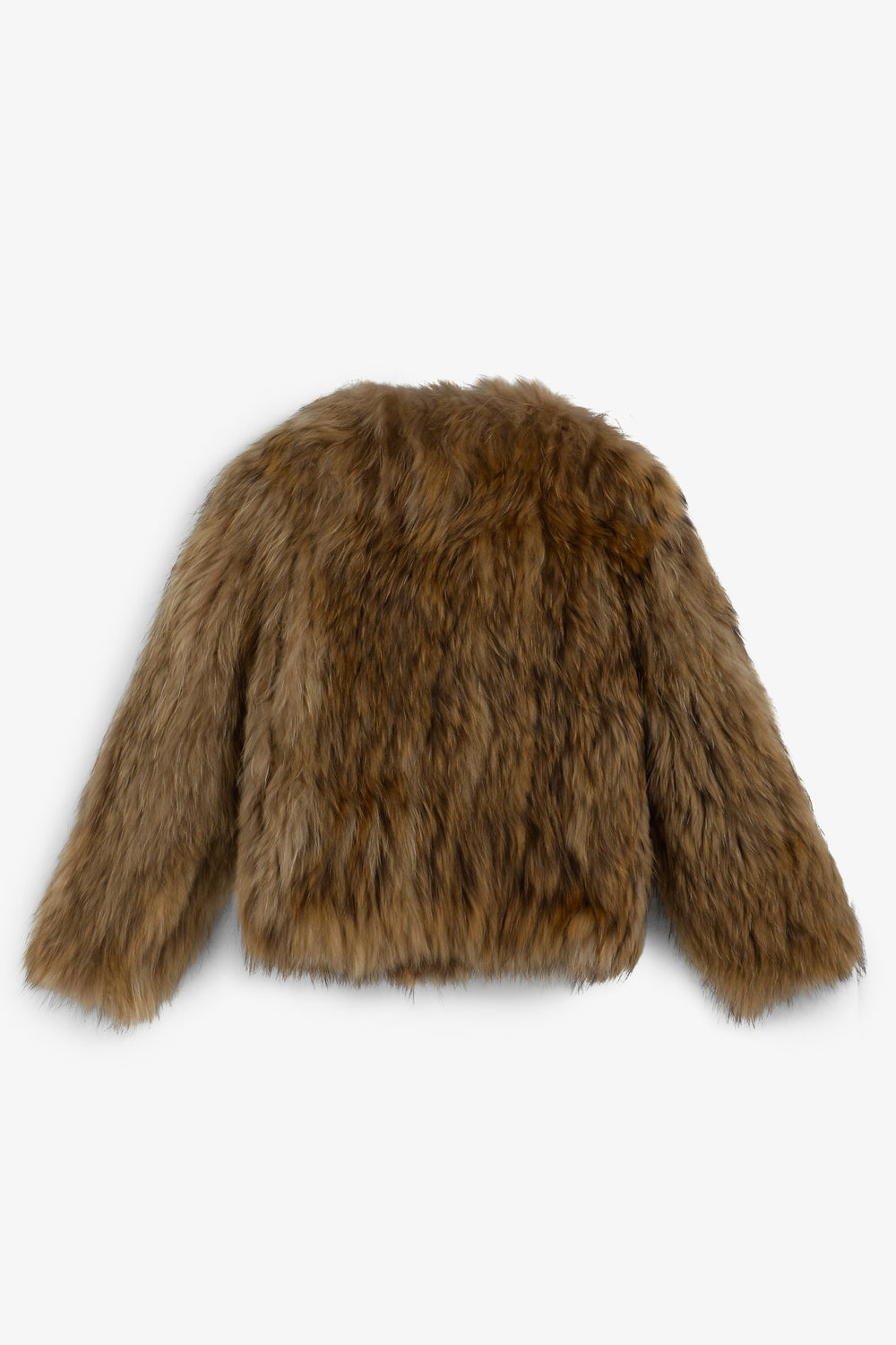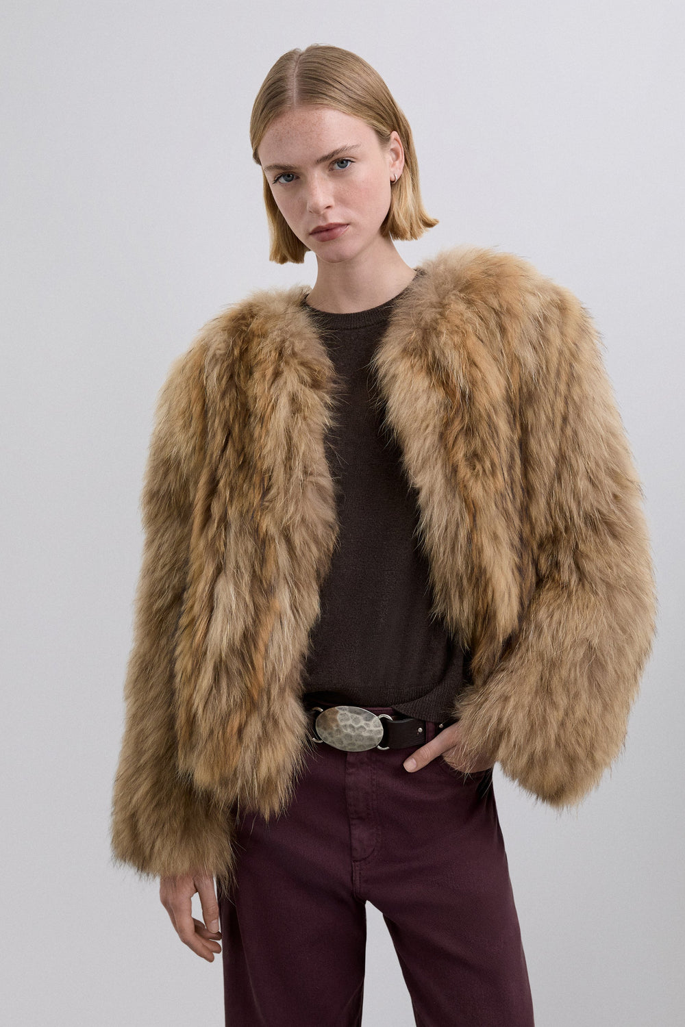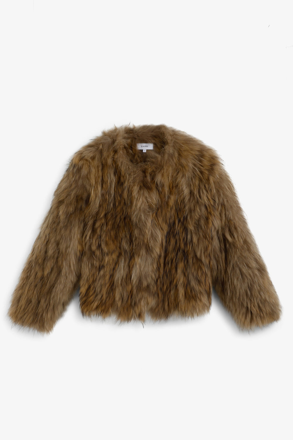 Chaqueta confeccionada 100% pelo de racoon natural. Manga larga. Corte medio a la cadera.