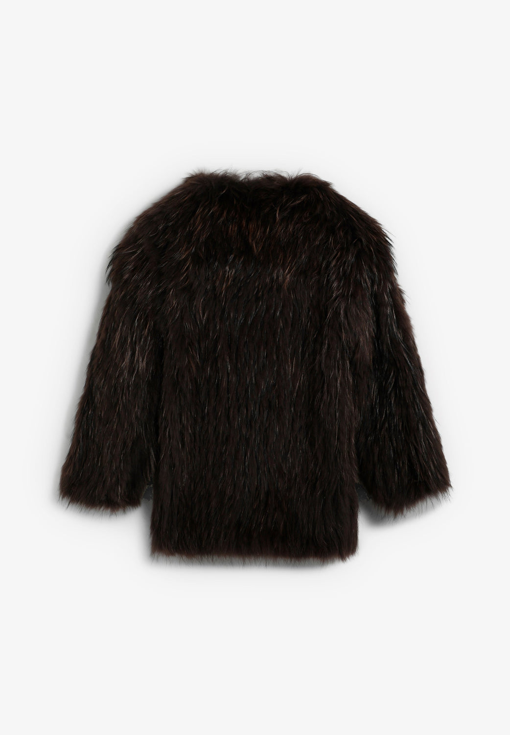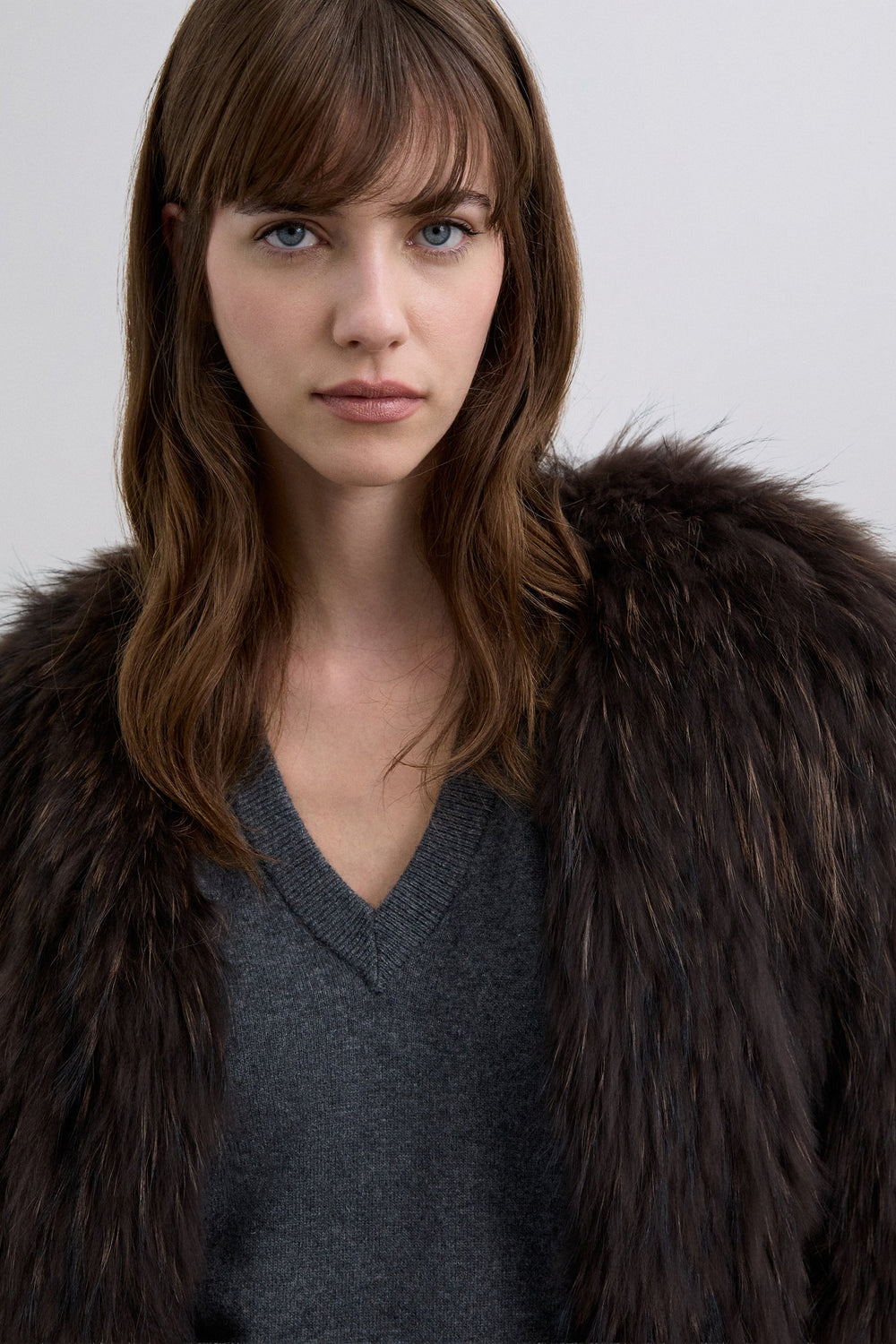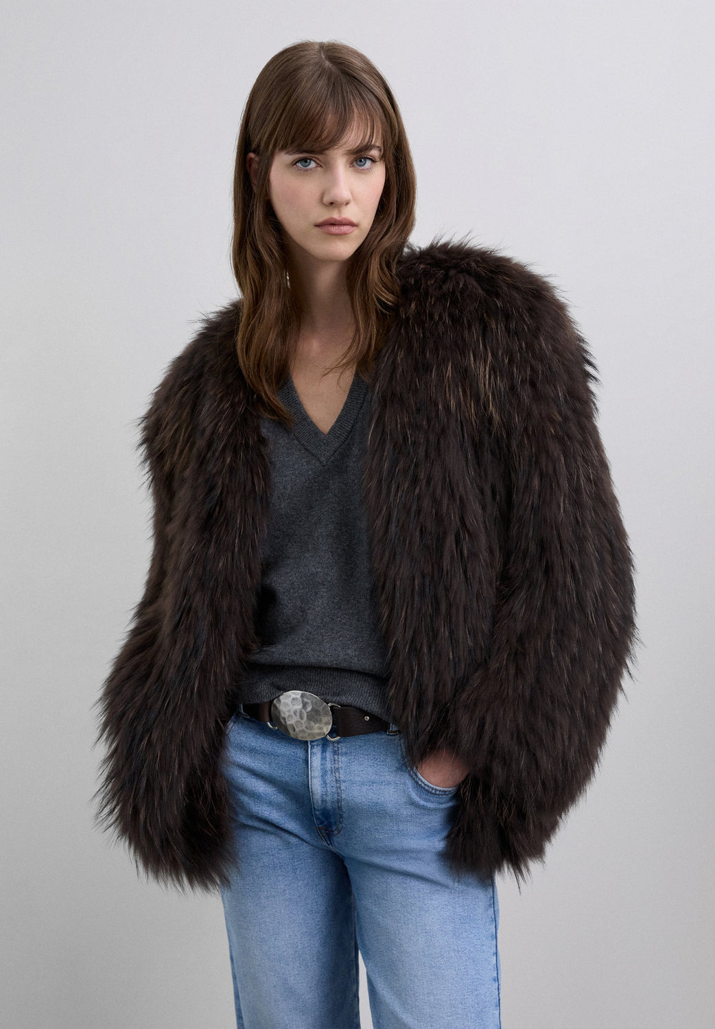 Abrigo premium confeccionado en 100% pelo. Regular fit. Escote en V. Manga larga. Cierre con corchetes.