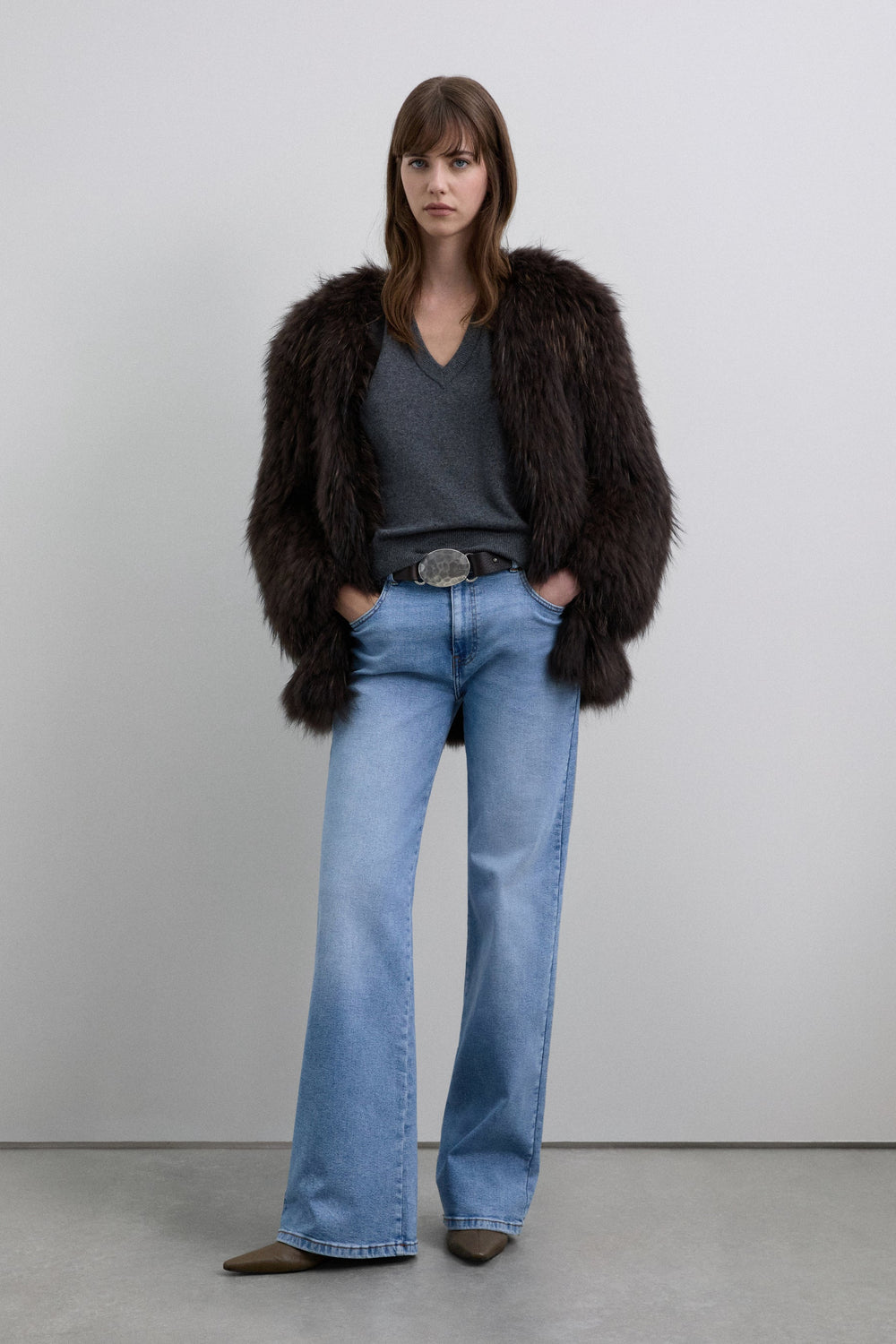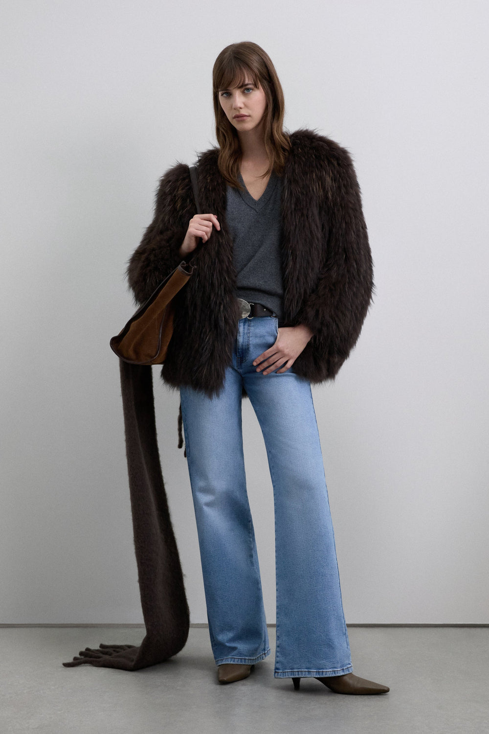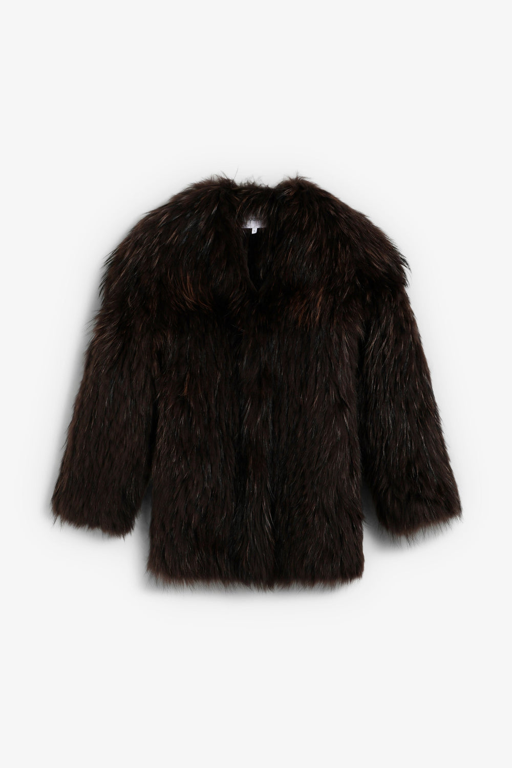 Abrigo premium confeccionado en 100% pelo. Regular fit. Escote en V. Manga larga. Cierre con corchetes.