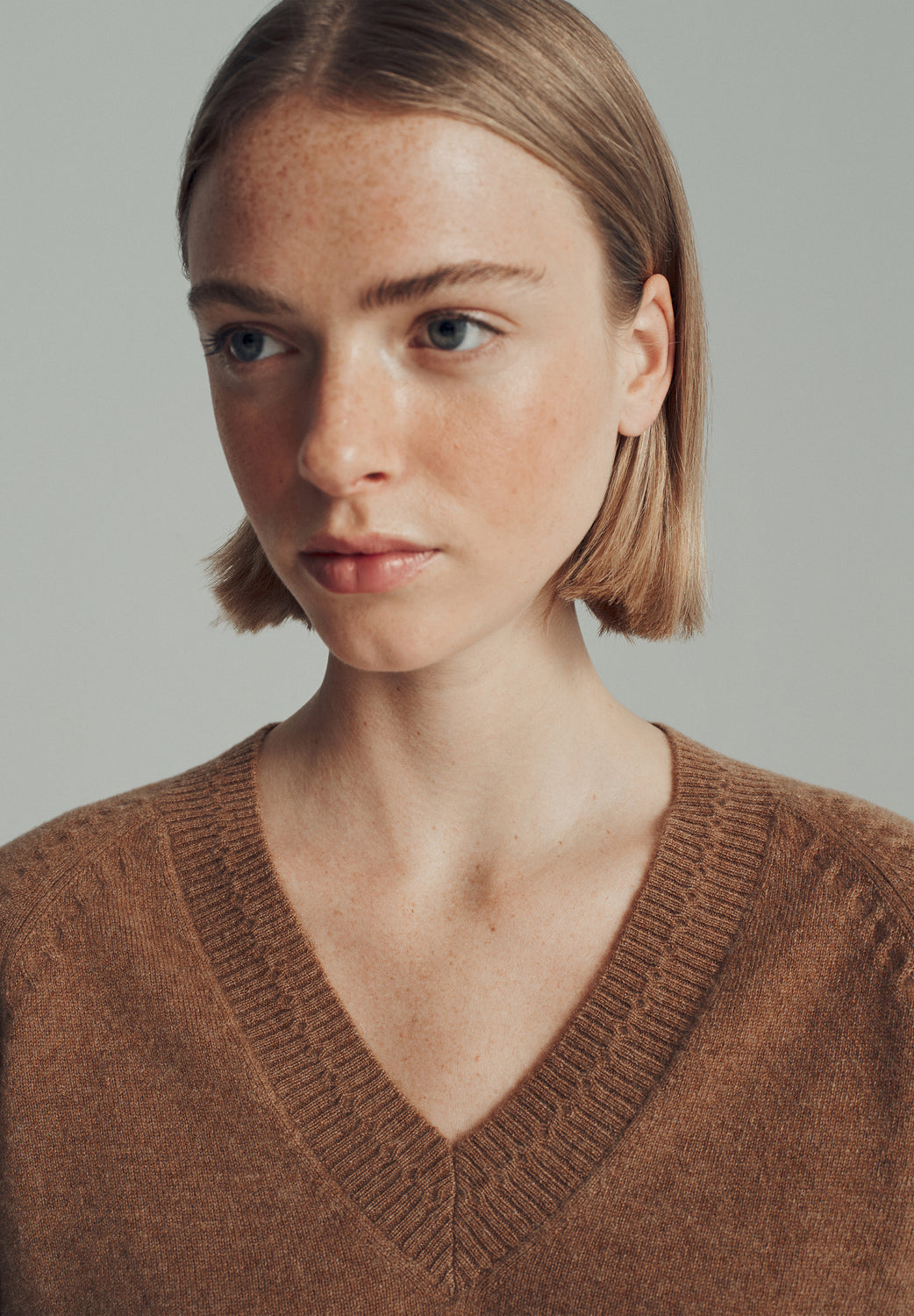 Jersey de punto confeccionado en 100% cashmere. Cuello pico. Manga ranglán. Acabados en rib.