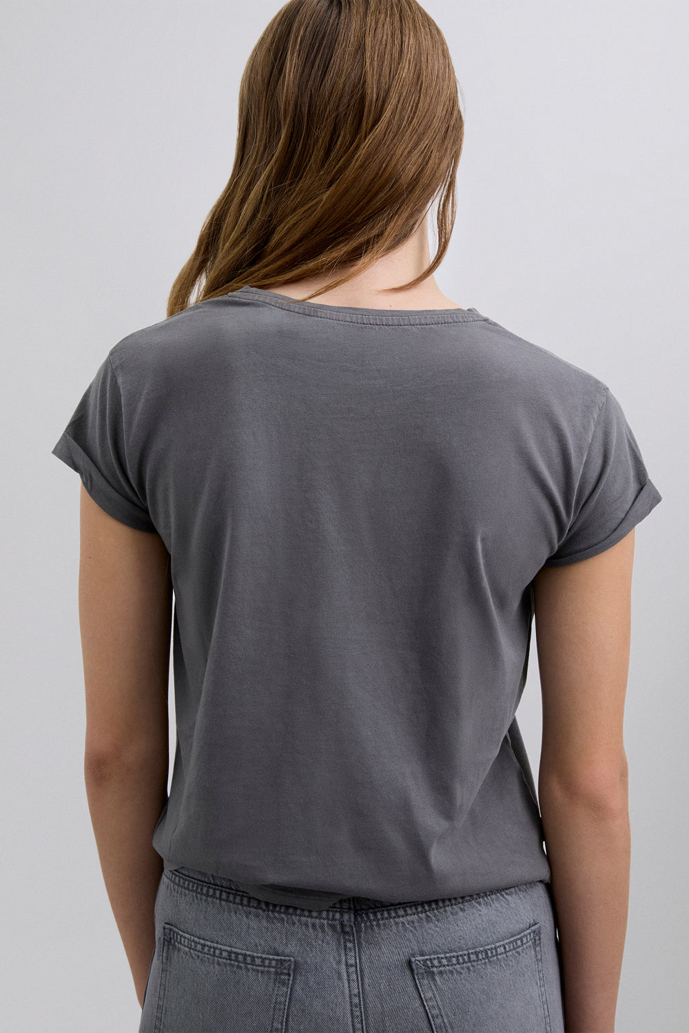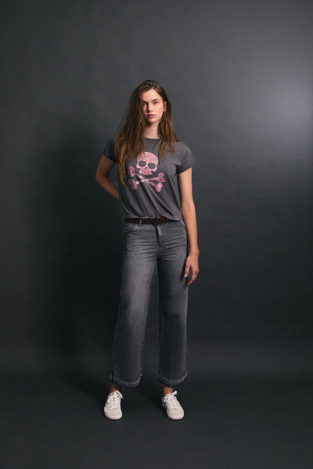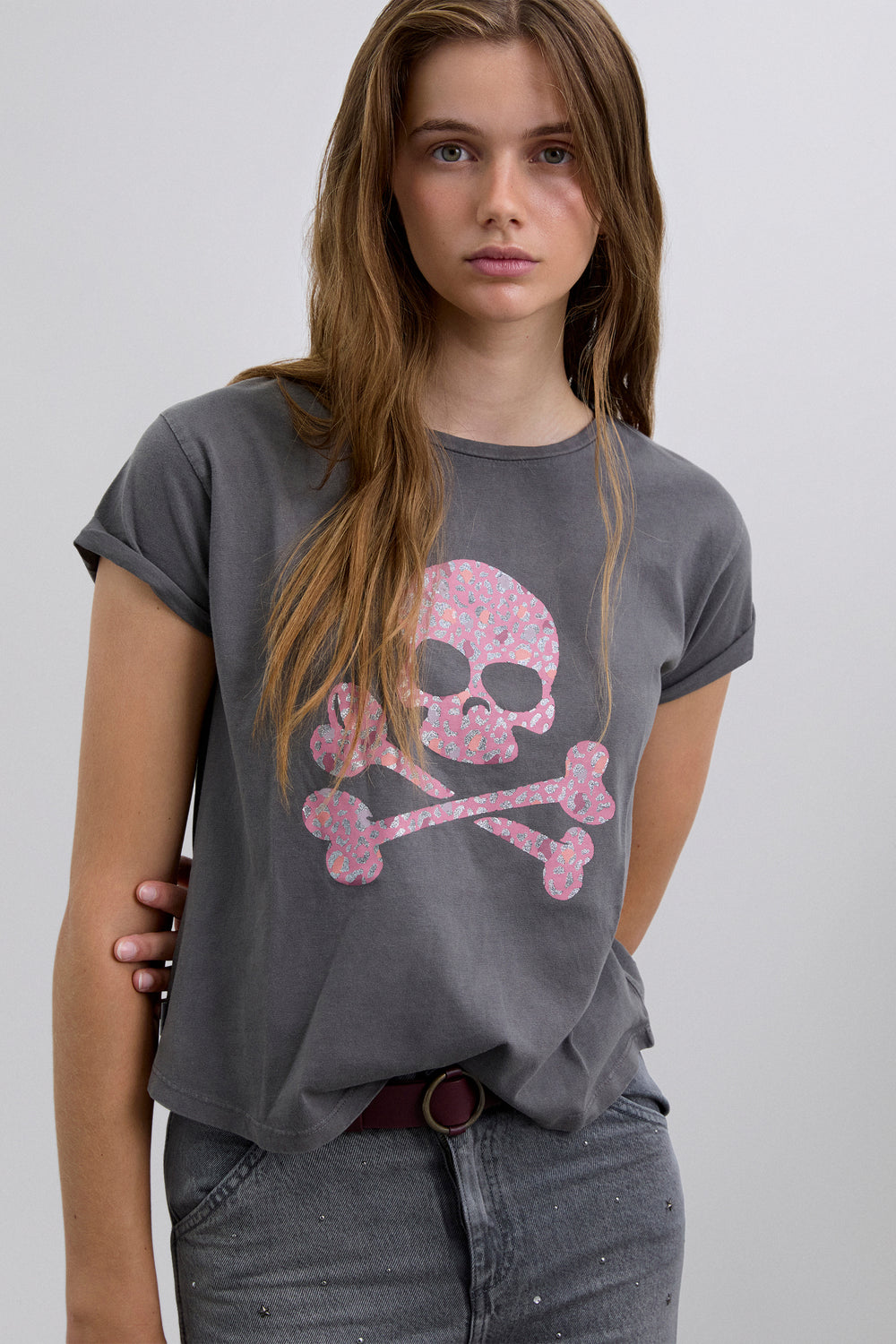 Camiseta confeccionada en 100% algodón BCI. Corte regular fit, cuello redondo y manga corta. Print de calavera frontal en pecho a contraste.