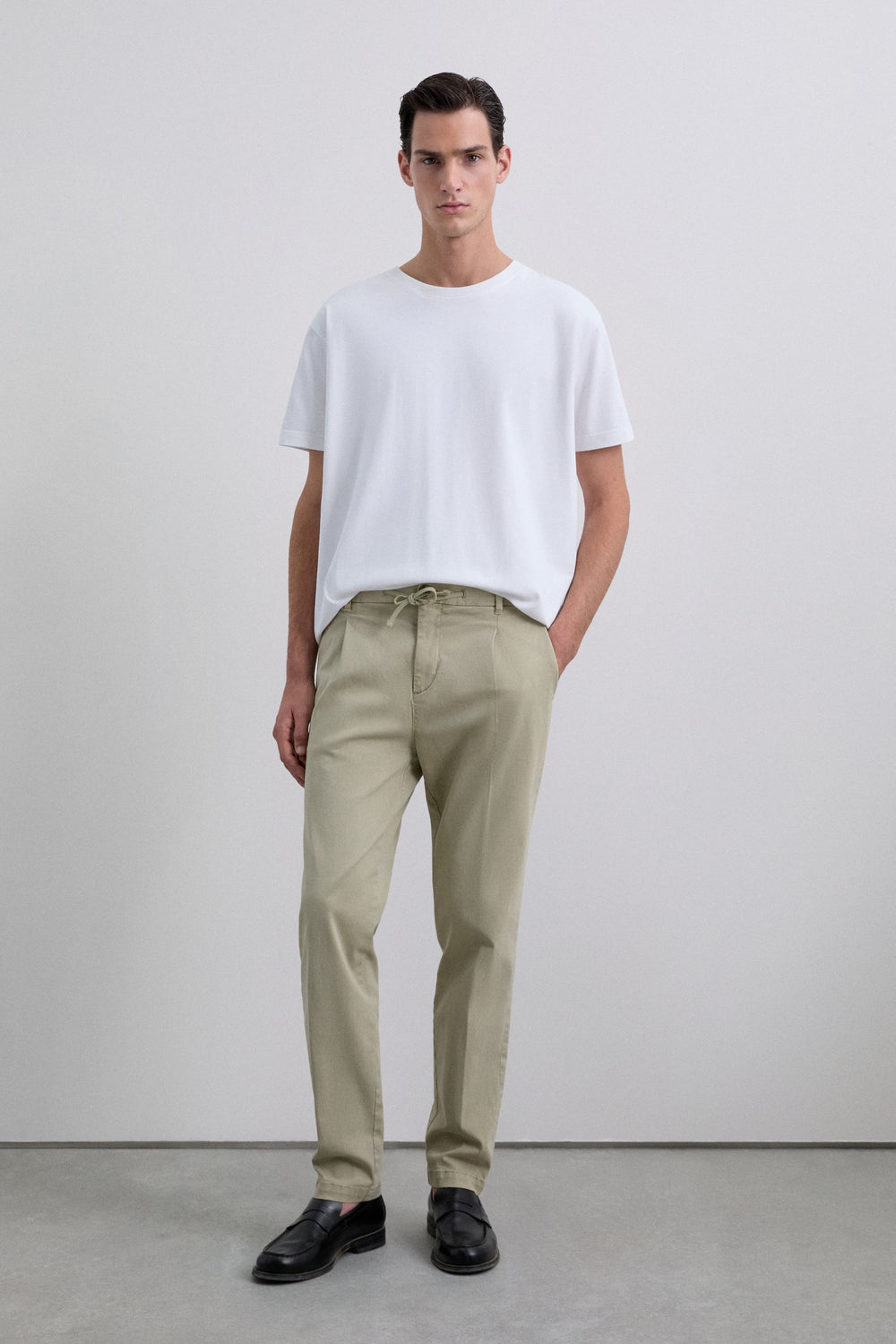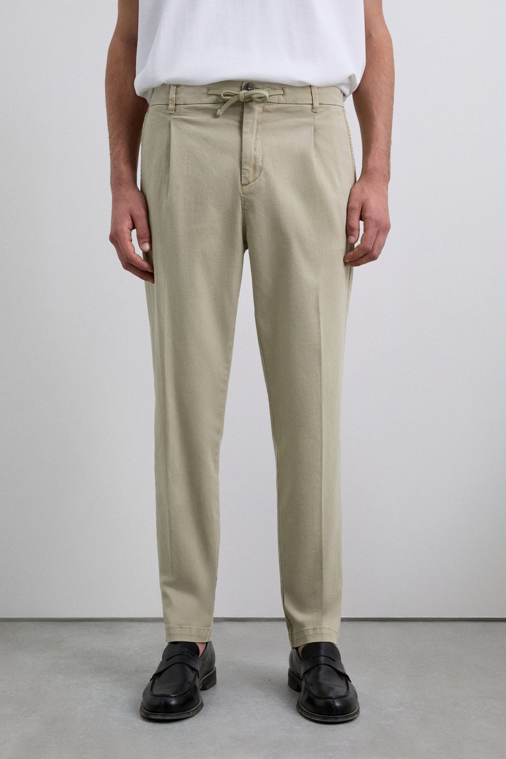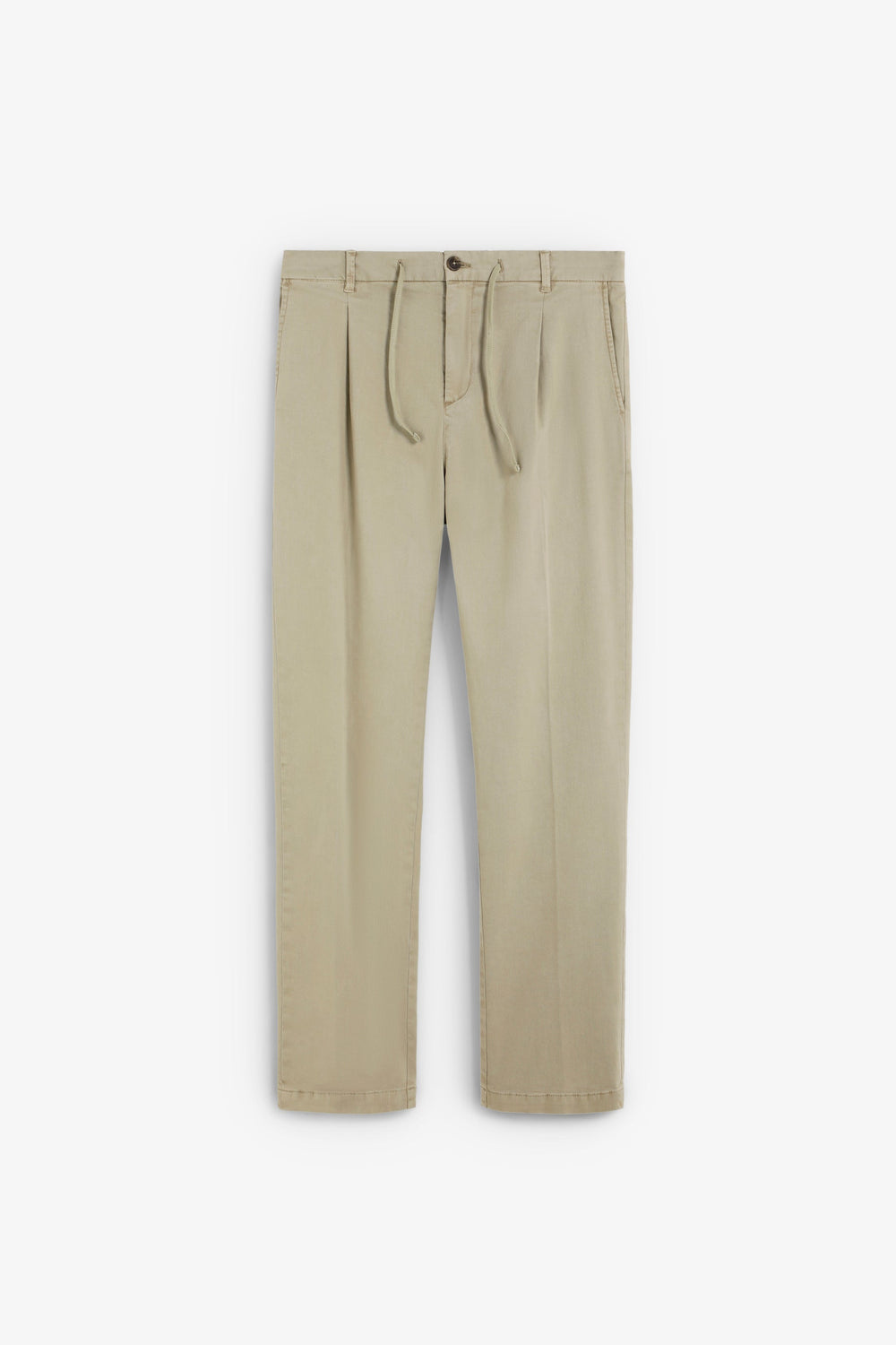 Pantalones confeccionados en algodón BCI. Relaxed Fit. Cierre ajustable mediante cordón, cremallera y botón en cintura. Dos bolsillos laterales, traseros con cierre mediante botón y pliegues delanteros. Trabillas en cintura.