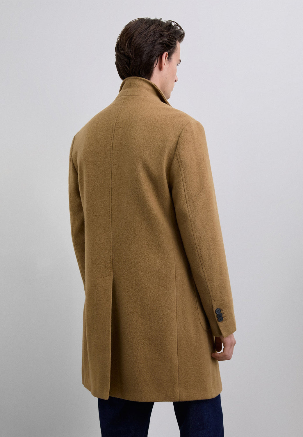 Abrigo largo confeccionado en mezcla de lana virgen de alta calidad. Cuello con solapa. Manga larga con puño abotonado. Bolsillos en frontal con solapa doble. Cierre por abotonadura frontal. Abertura central posterior.