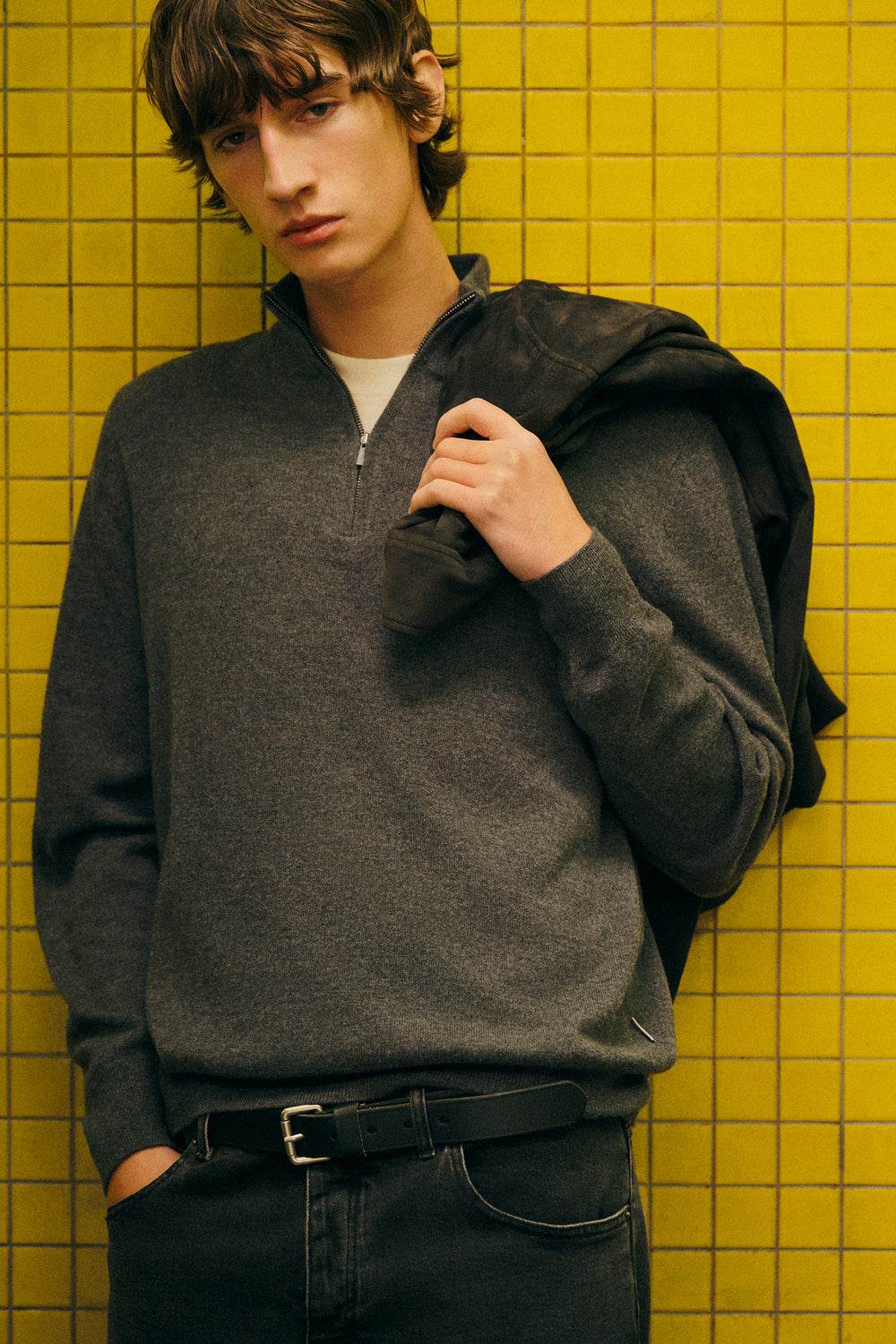 Jersey confeccionado en 100% lana merino. Regular Fit. Cuello de cierre con media cremallera. Manga larga. Detalle de calavera bordada a tono en pecho. Acabados en rib.