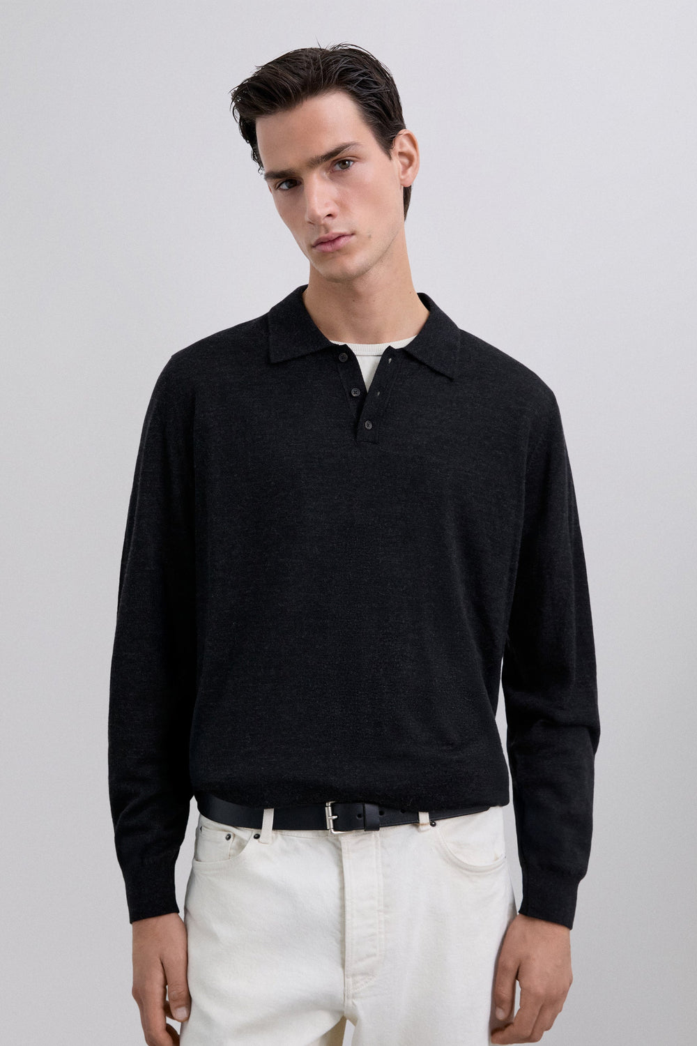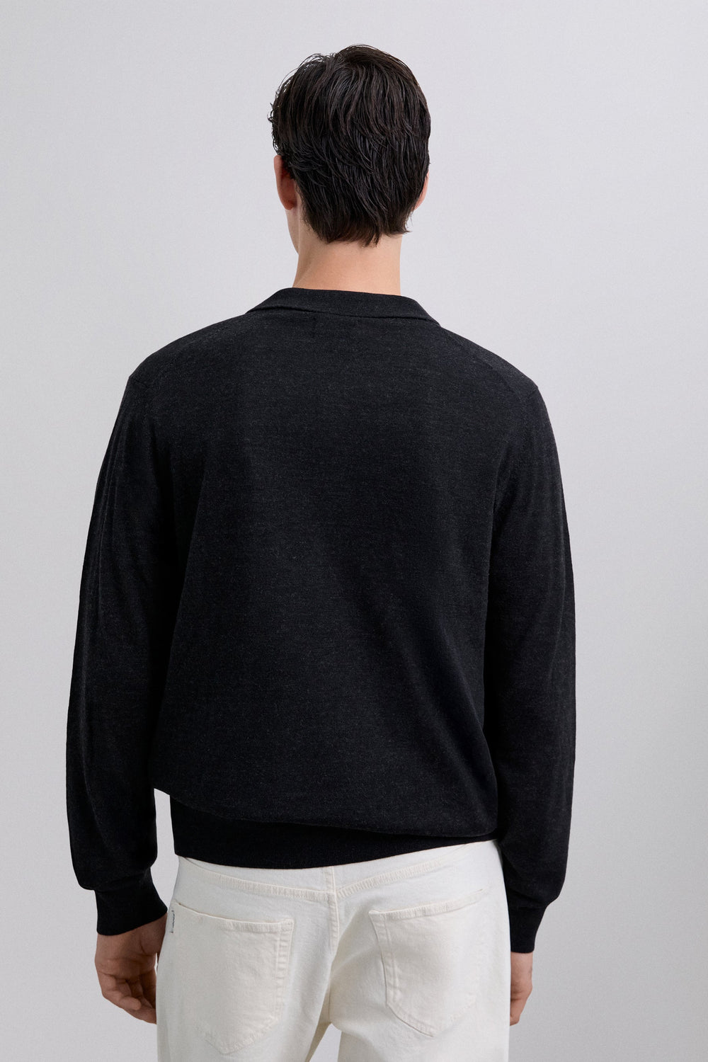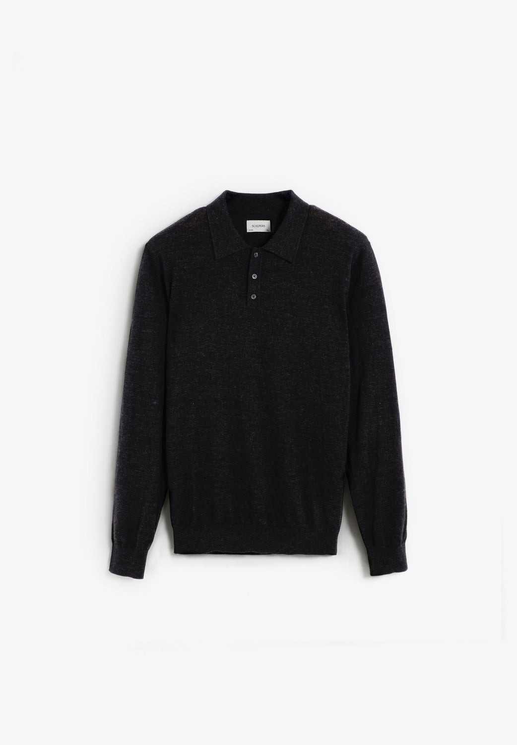 Jersey confeccionado en 100% lana. Manga larga. Cuello polo. Cierre mediante botones.