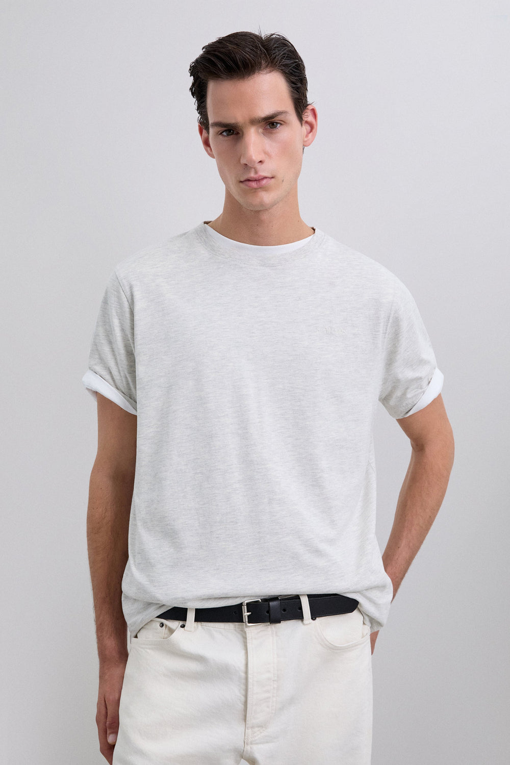 Camiseta confeccionada en 100% Algodón Orgánico. Regular Fit. Manga corta. Cuello redondo. Efecto lavado. Logotipo bordado tono en el pecho. Cuello de canalé.